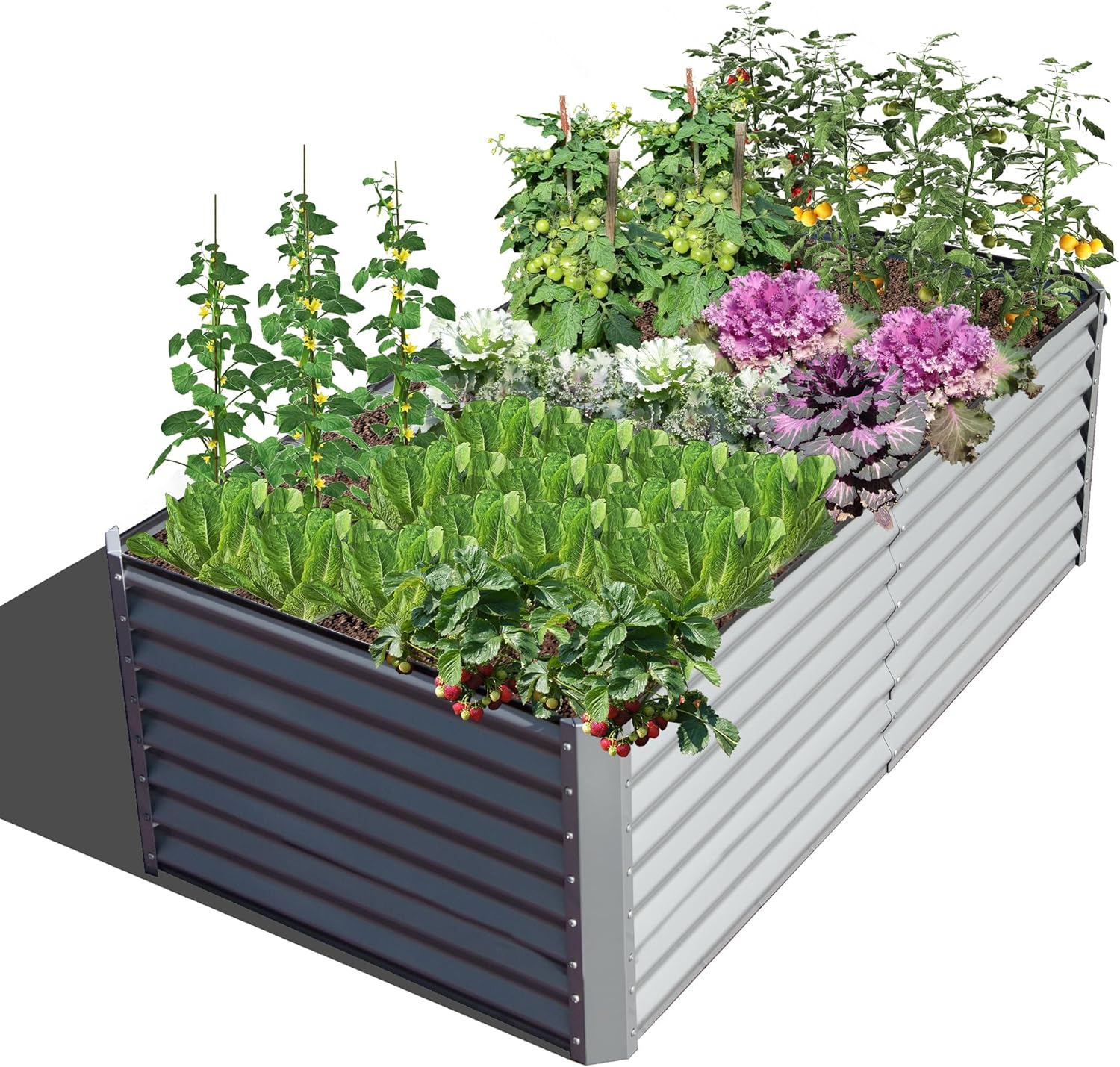 • Thicker Material: Made of thick galvanized steel plate with eco-friendly coating, rust-proof and durable. The 0.8 mm thickness, reaching 1.8 mm in the thickest part, ensures long-lasting raised garden beds' outdoor aesthetics.