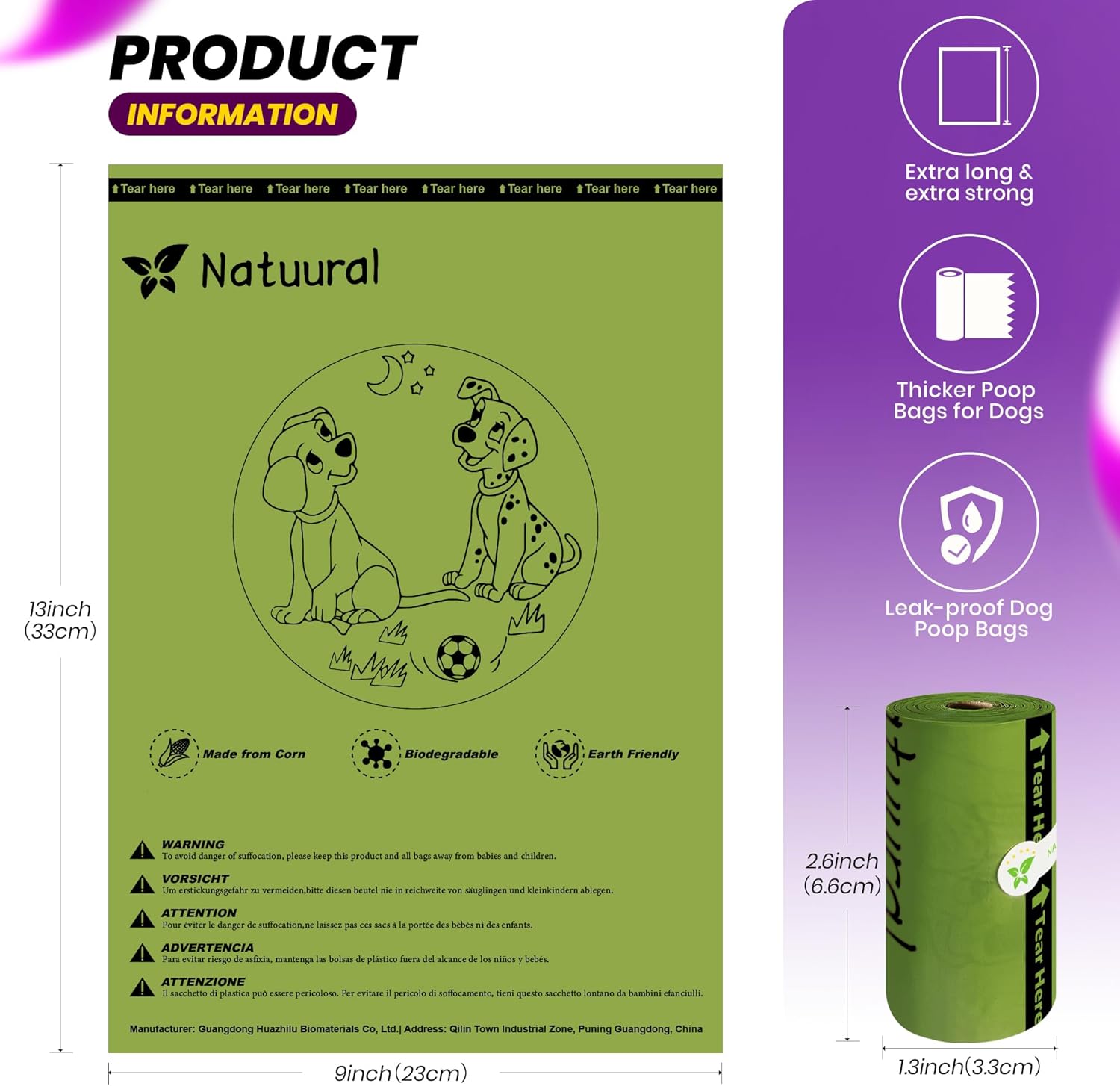 • Green & Strong: These biodegradable poop bags are designed from cornstarch materials, leakproof and tear resistant, that effectively locks in odors.