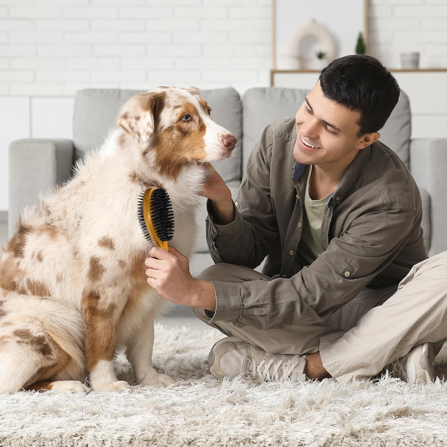 • Versatile 2-in-1 grooming solution: Simplify your pet care routine with this double-sided brush. One side features durable pins for effective detangling and removing loose undercoat hair, while the other offers gentle boar bristles for smoothing and adding shine.