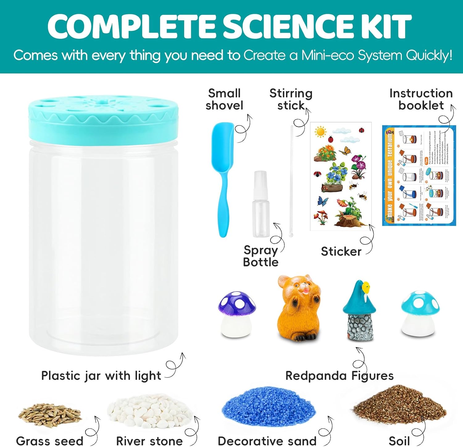 Light Up Terrarium Kit for Kids,Redpanda Gardening Kit for Boys and Girls,Creative Educational Gardening Toy,Arts and Crafts Activity Kits,Birthday Gifts for Ages 4 5 6 7 8-12