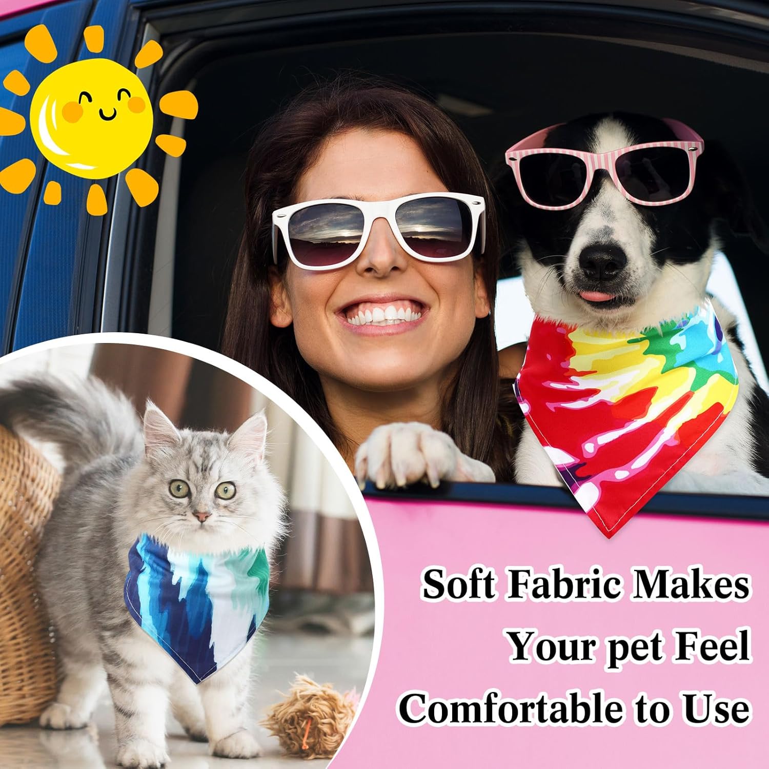 • Eye Catching Tie Dye Design: these dog bandanas are styled with bright, tie dye colors, adding vibrancy and fun to your pet's look; Wearing our triangle dog bibs at various events will turn heads and make your beloved pet the center of people's attention