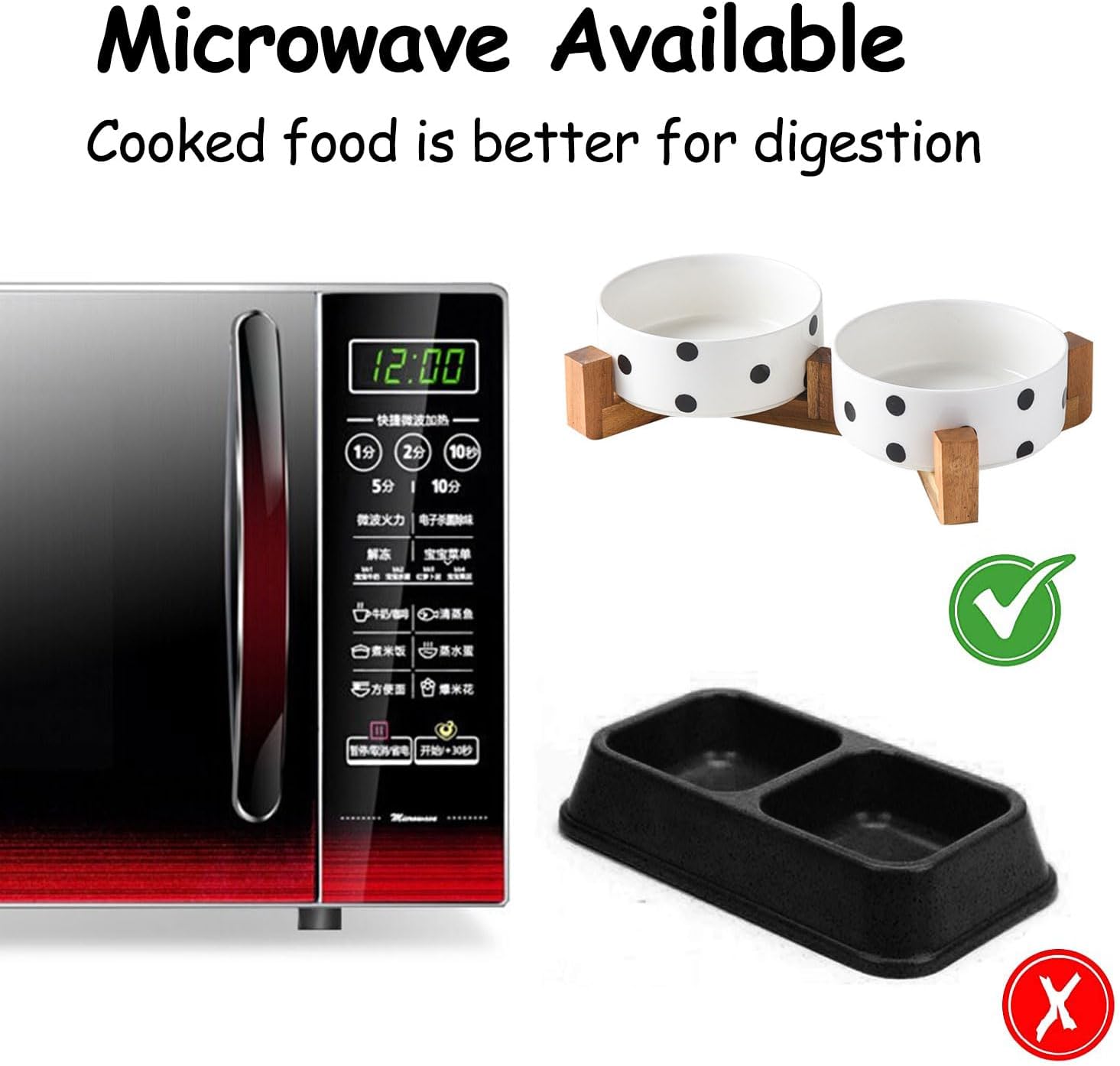• DISHWASHER MICROWAVE SAFE: - These black small size ceramic dog bowl set are as practical as they are cute. modern design, you can place your ceramic cat dog bowls in your dishwasher with confidence. Plus, for dogs and cats with special dietary needs, this dog cat bowl is microwave safe, so you can safely heat your pet's food.