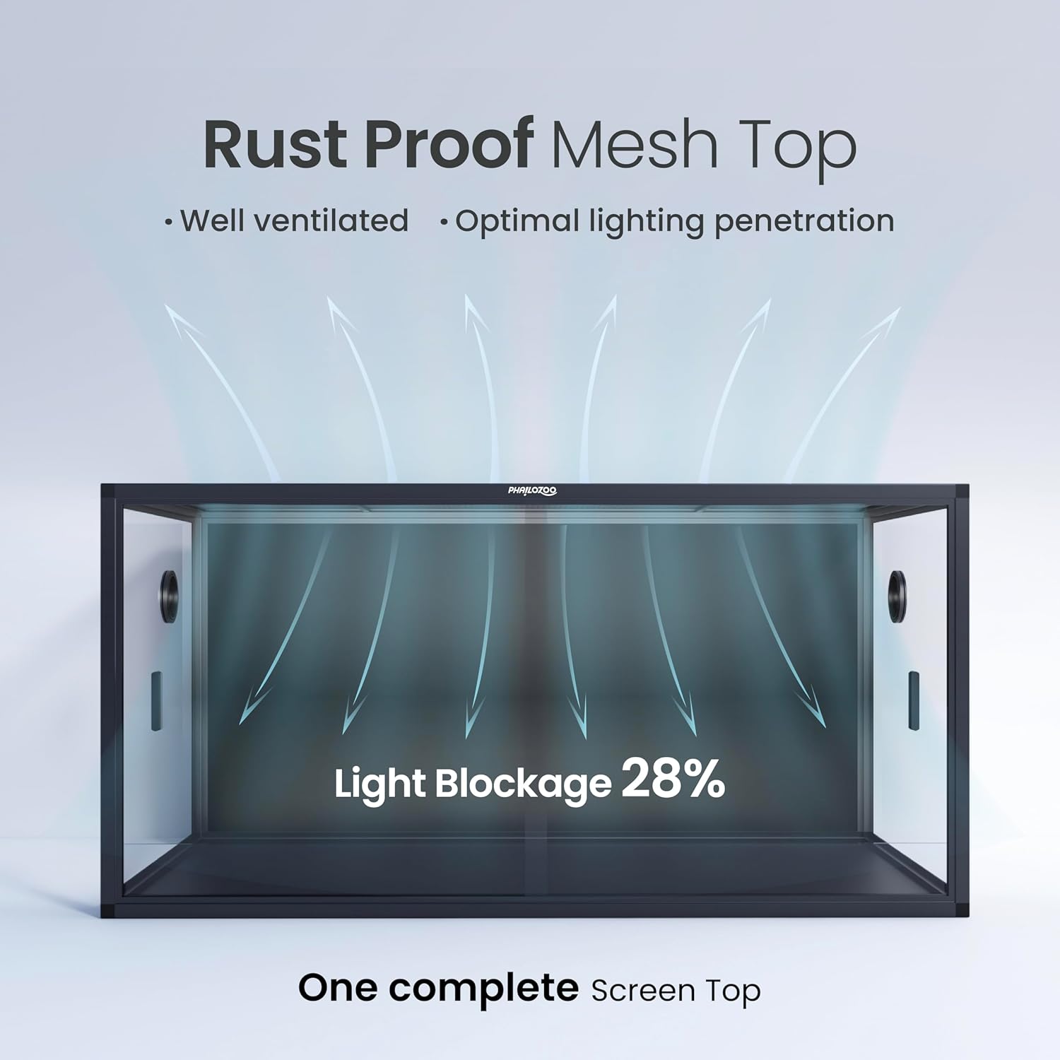 • 【Worry Less】NO GAPS FOR ESCAPING with fully closed structure. Rigid tempered glass doors with tiny door gaps. Rust proof top screen ventilation allows better air circulation and optimal lighting penetration.