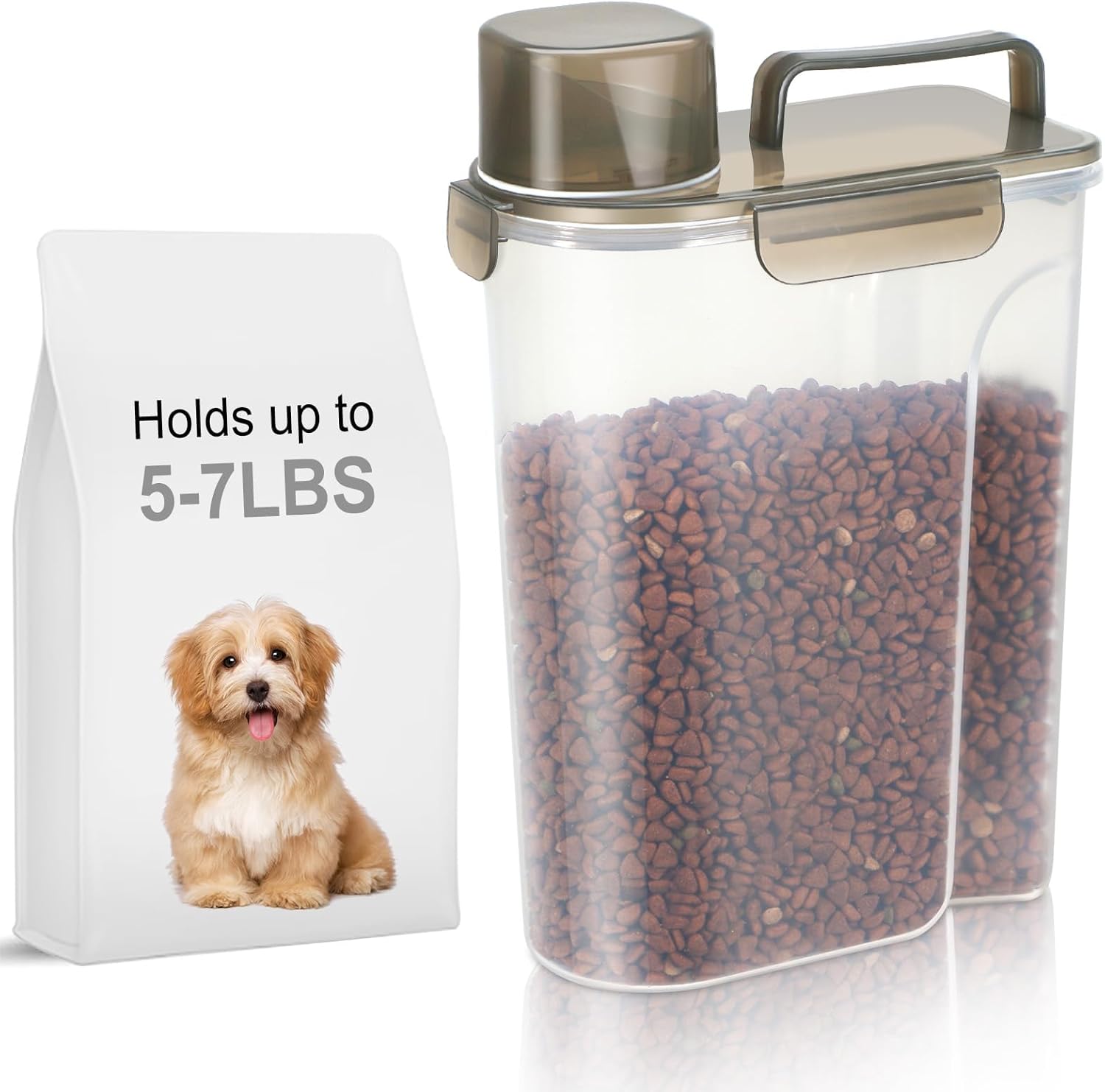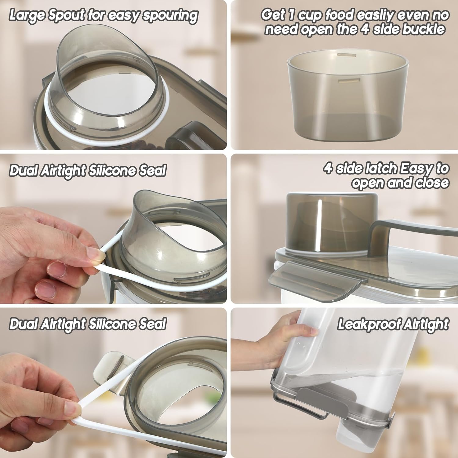 • WHAT YOU GET? The dog food storage container comes with a 1-pack airtight pet food storage container with a clear measuring cup and an upgraded large spout for easy pouring of pet food at any time. This dog food storage containers can be a gift The perfect gift for any home.