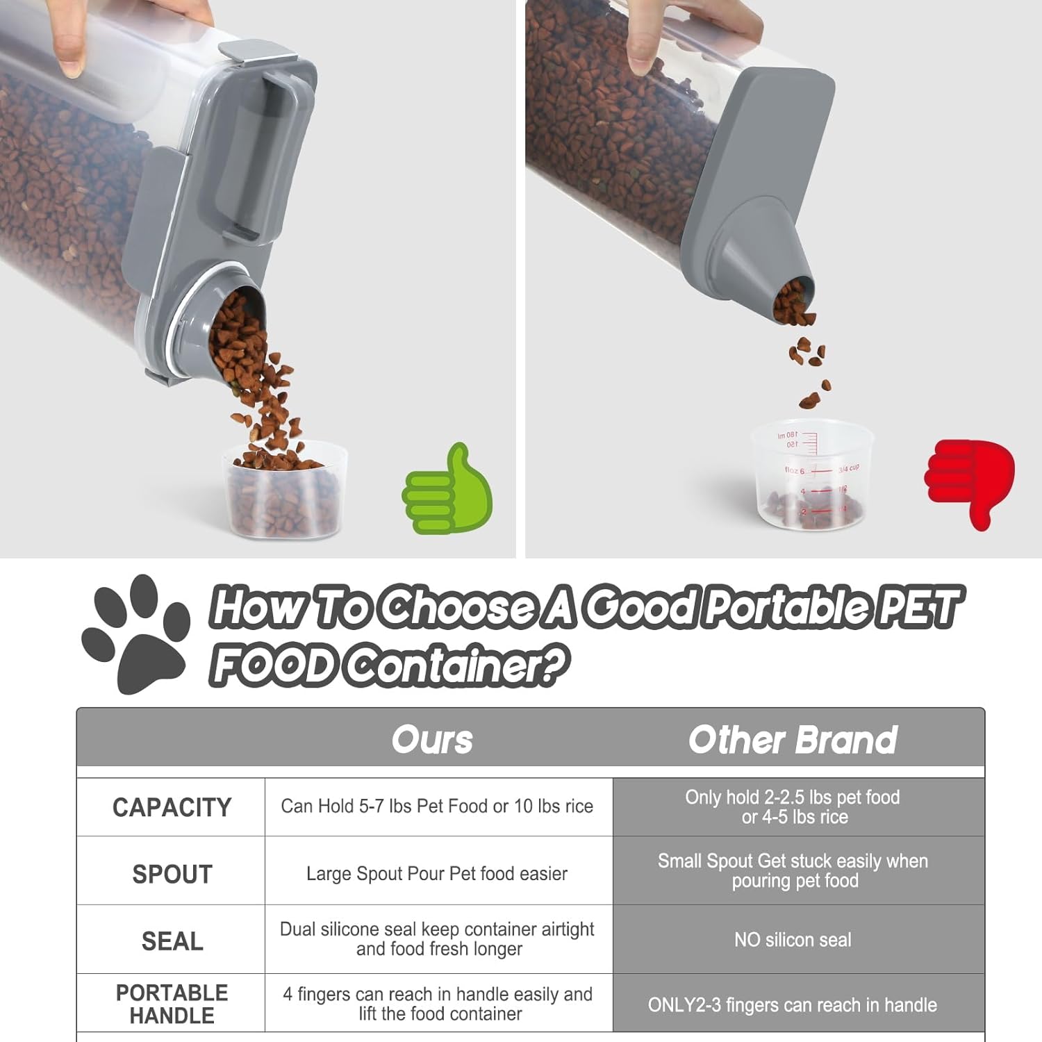 • FRESH SEALED CONTAINER : The dog food storage container is double-sealed with press-type snaps and silicone sealing gasket. The slot design keeps the food from moisture. There are four snaps on the side of the sealing cover, which provides excellent sealing and ensures Food freshness and freedom from moisture, dust and pests.