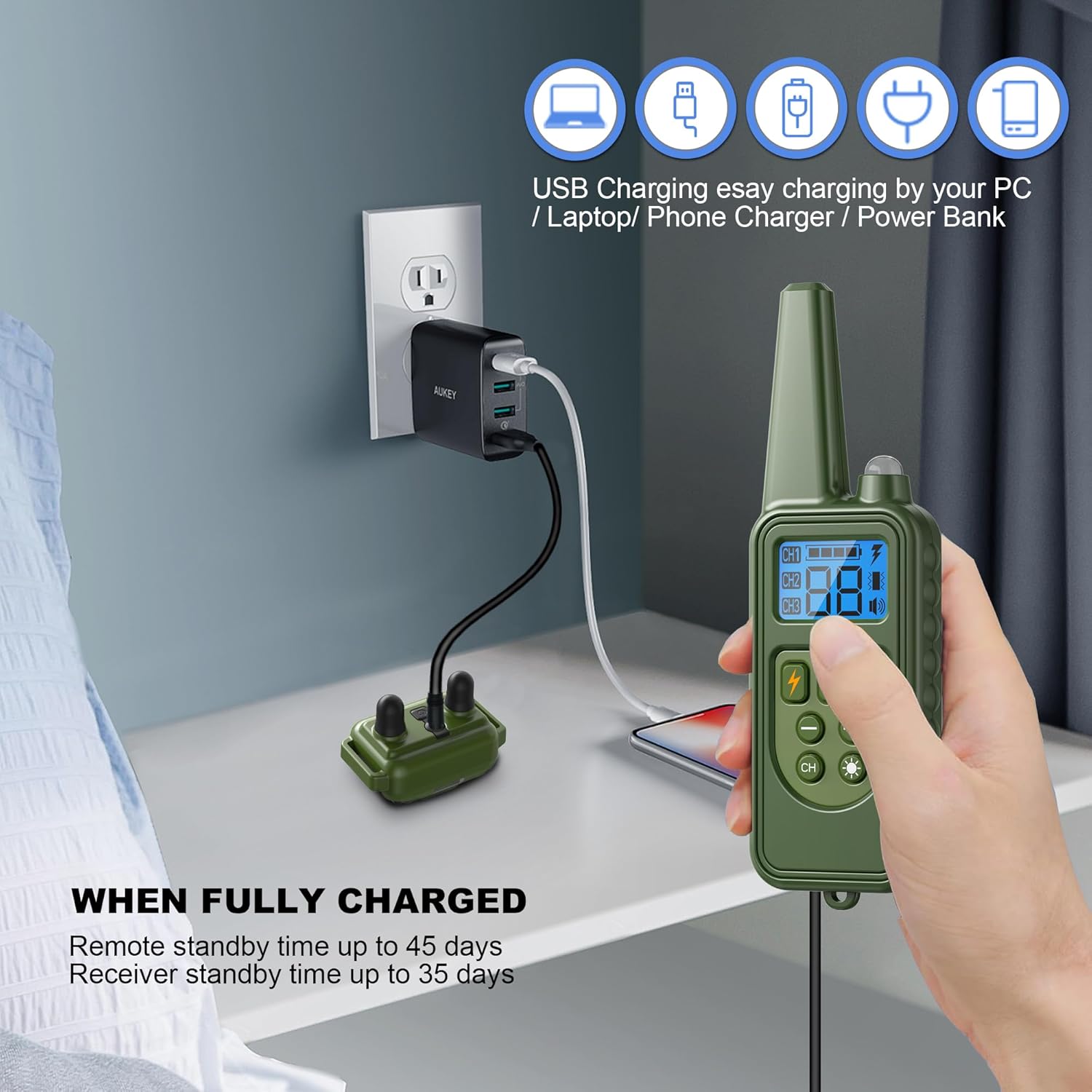 • Rapid Charging: Charge the Heaflex dog training collar in just 2.5 hours with USB. The receiver lasts up to 35 days on standby, and the remote up to 45 days. Quick recharging and long battery life ensure reliable and efficient training sessions