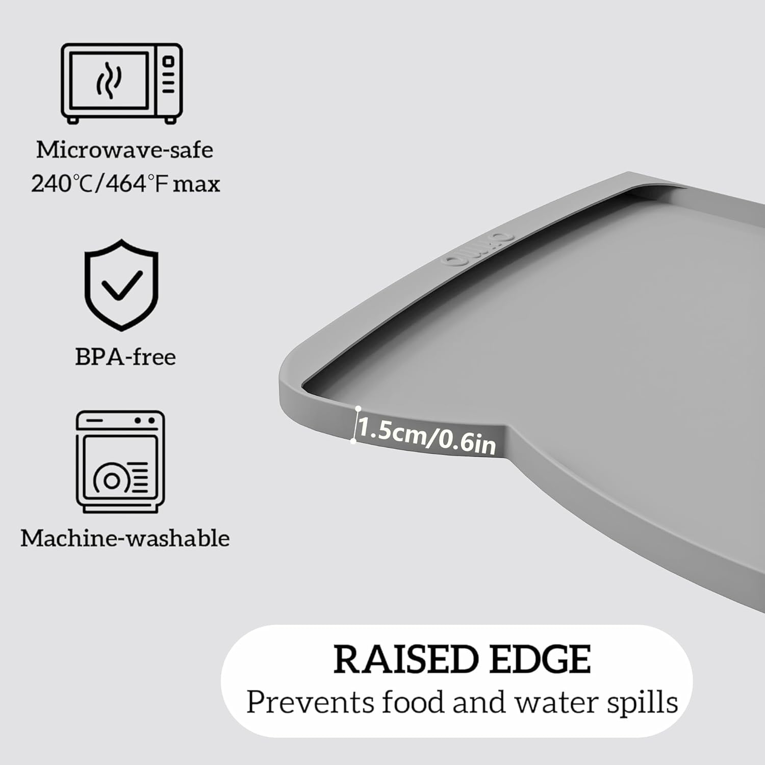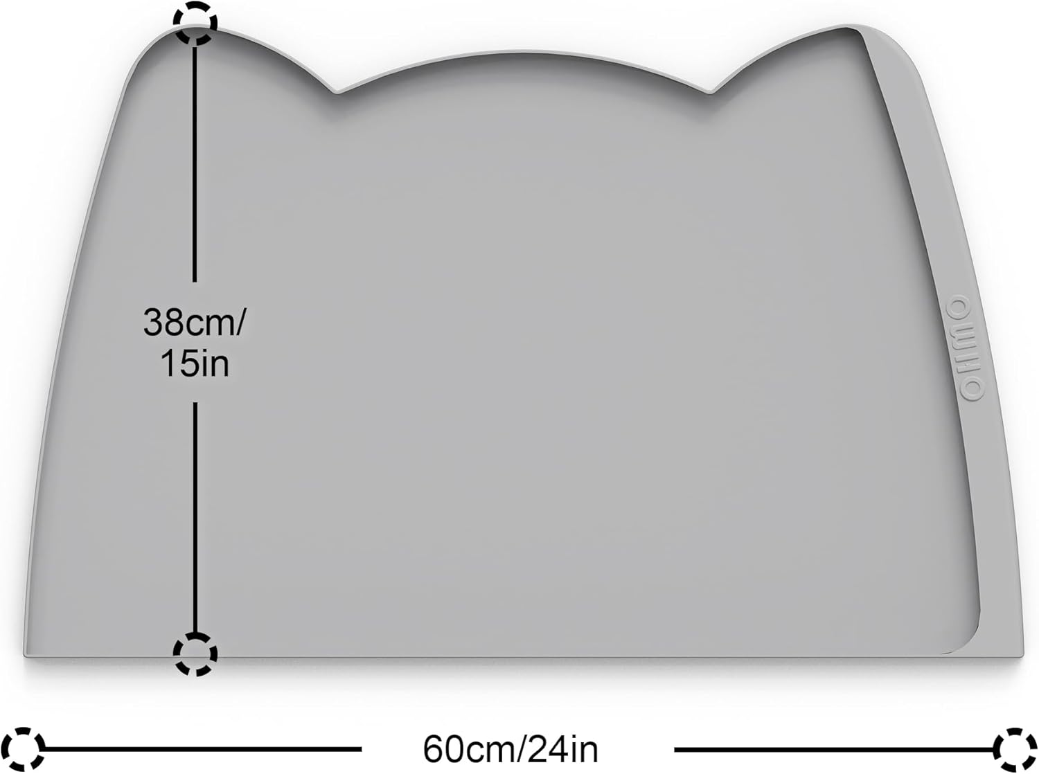 OHMO Dog Food Mat(Ash, 24 * 15'') w/Residue Collection Pocket Silicone Pet Feeding Mat for Floor High Edges Anti Spills Waterproof Cat Water Bowl Tray, Easy Clean Placemat