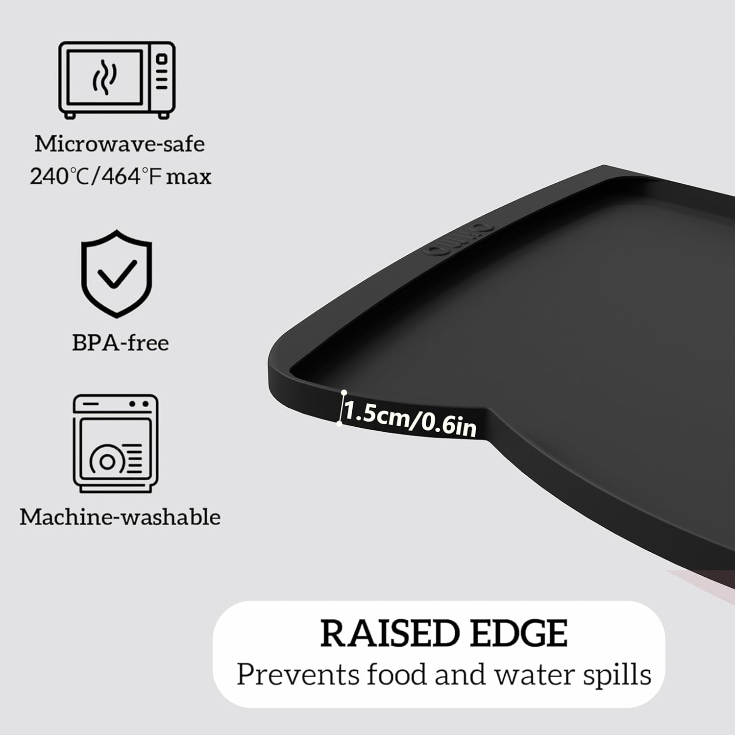 • 🐾High & Thick Edges: Pet feeding mats with 0.6"raised edge can effectively collect residues and spills, minimizing dirt and mess, and keep the floor clean and tidy; The 0.1 inch thickened edge makes the mat less likely to bend or be torn up by pets,giving you a long-lasting and durable pet bowl mat.