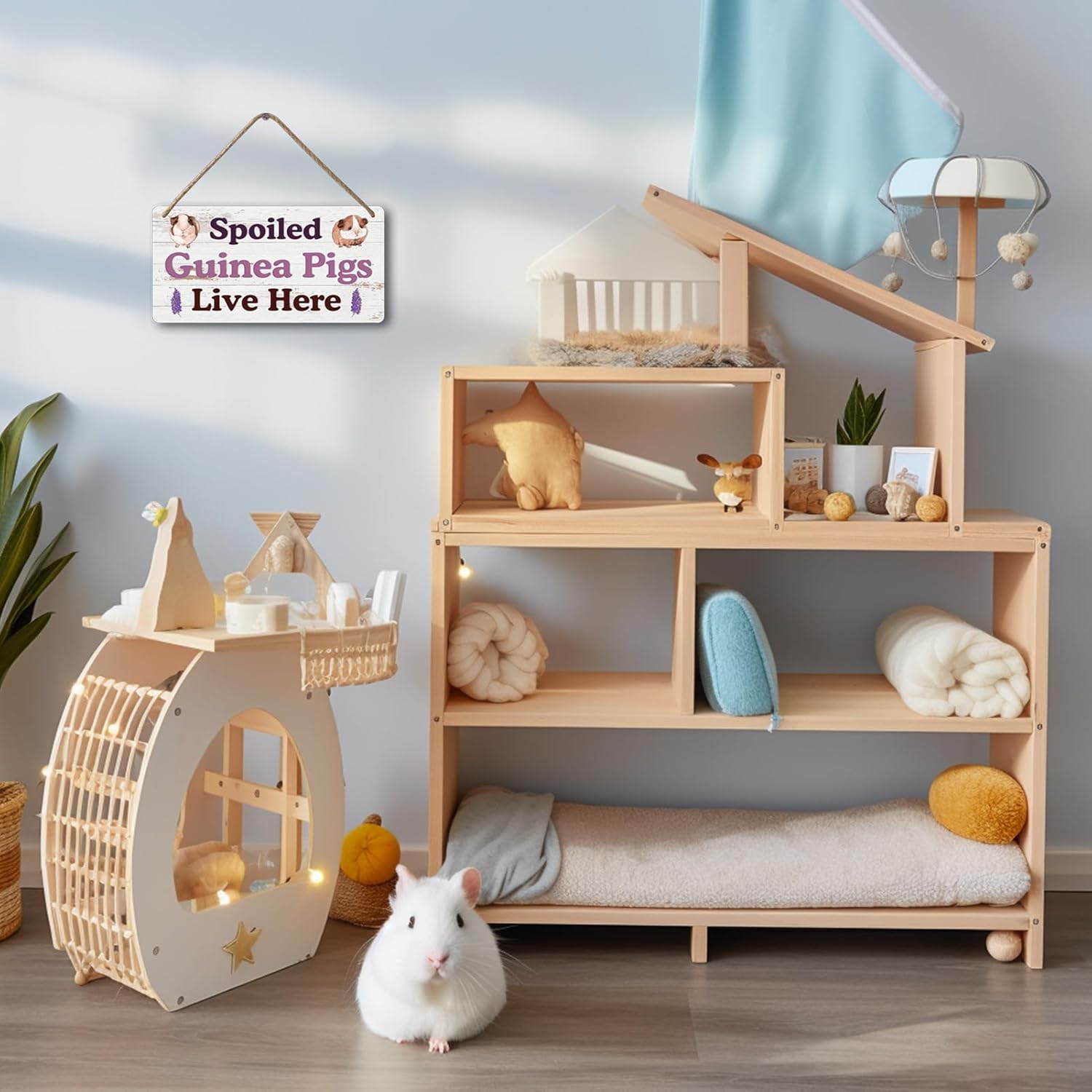 • SIZE FOR GUINEA PIG TOYS AND ACCESSORIES : 12 x 6 inch personalized text " Spoiled Guinea Pigs Live Here " to add fun and color to your room.