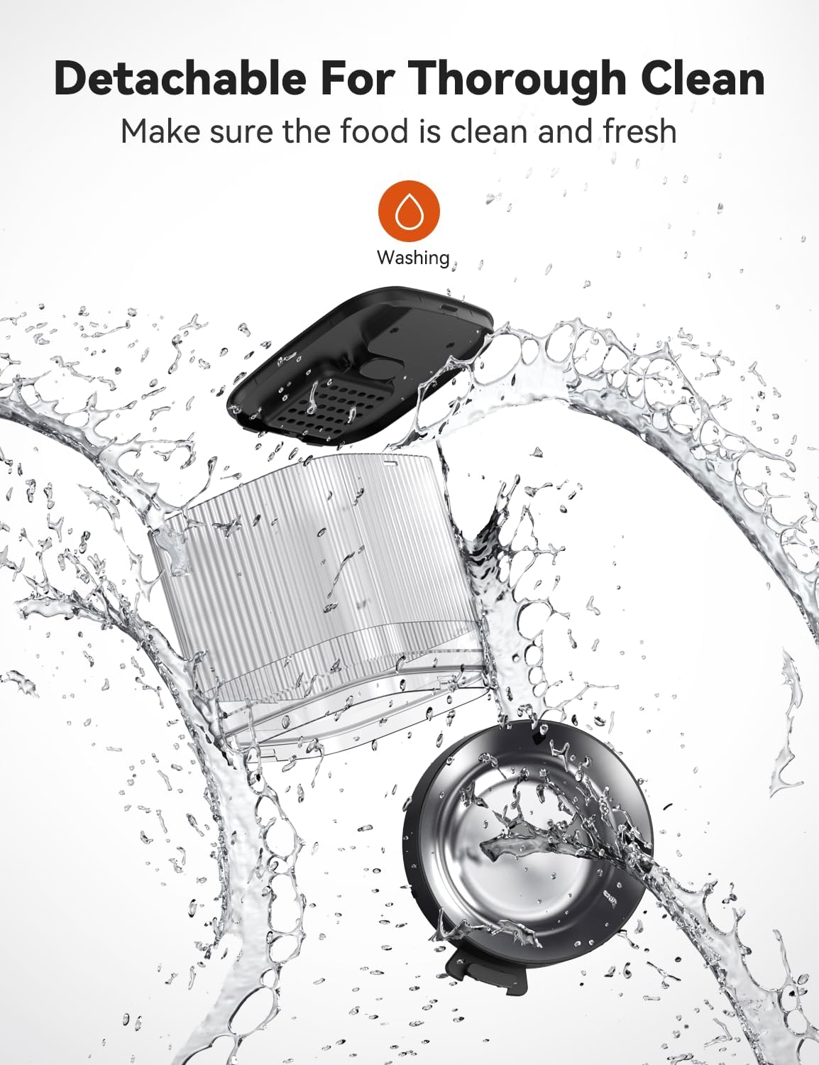 • Reliable Twist-Lock Storage: The automatic cat feeder comes with a unique twist-lock lid, ensuring the perfect amount of dry kibble (sized 0.07-0.47in / 2-12mm in diameter) is securely stored. This design preserves the crunchiness and flavor of the food while keeping it safe from curious paws.