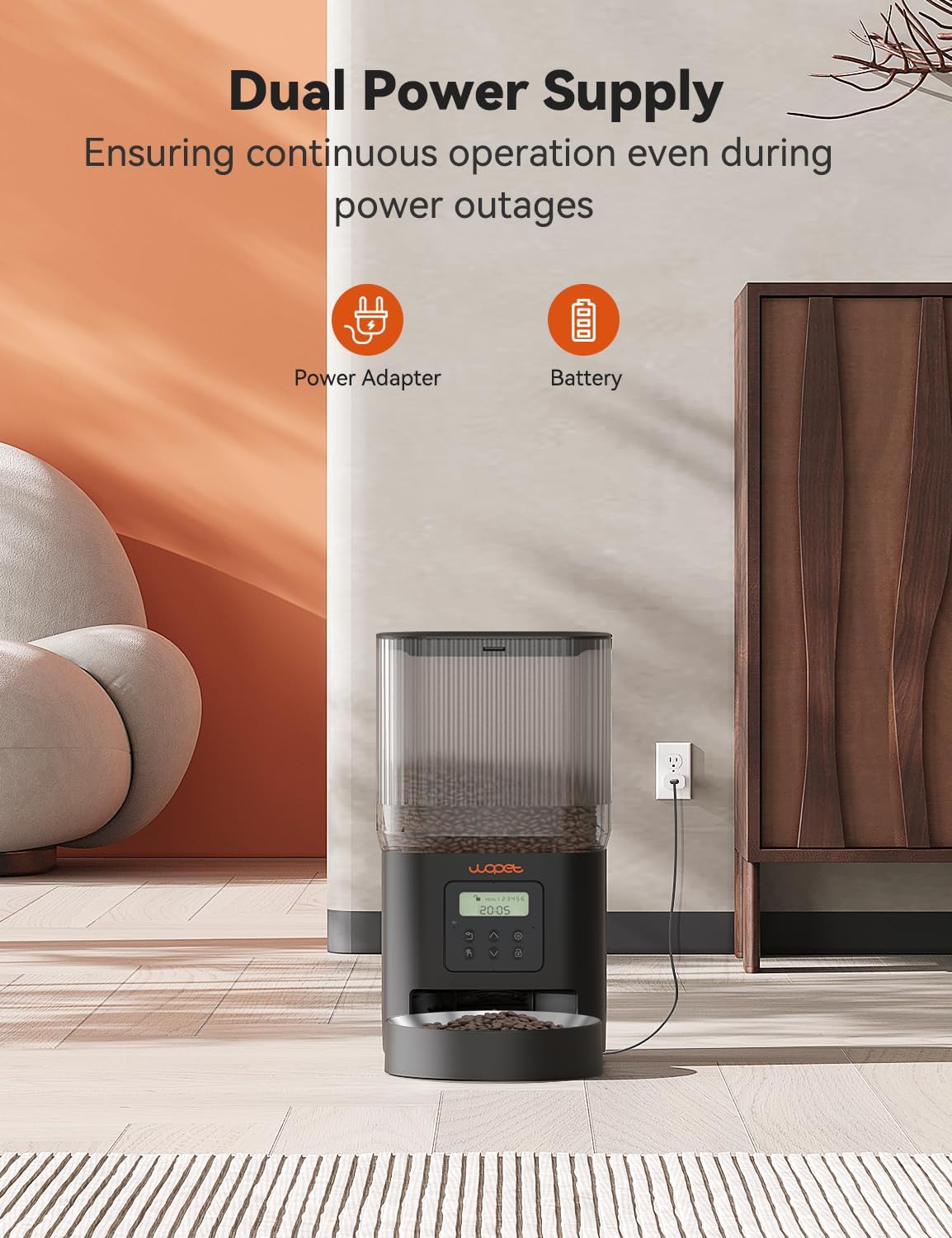 • 10-Second Voice Meal Call: The Wopet pet feeder allows you to record up to 10 seconds of voice messages A familiar voice of the pet's owner helps alleviate their anxiety and allow them to eat peacefully when you are not around. Your phone would receive notifications when the feeding completes, the tank is jammed and the battery is low, or other problems.
