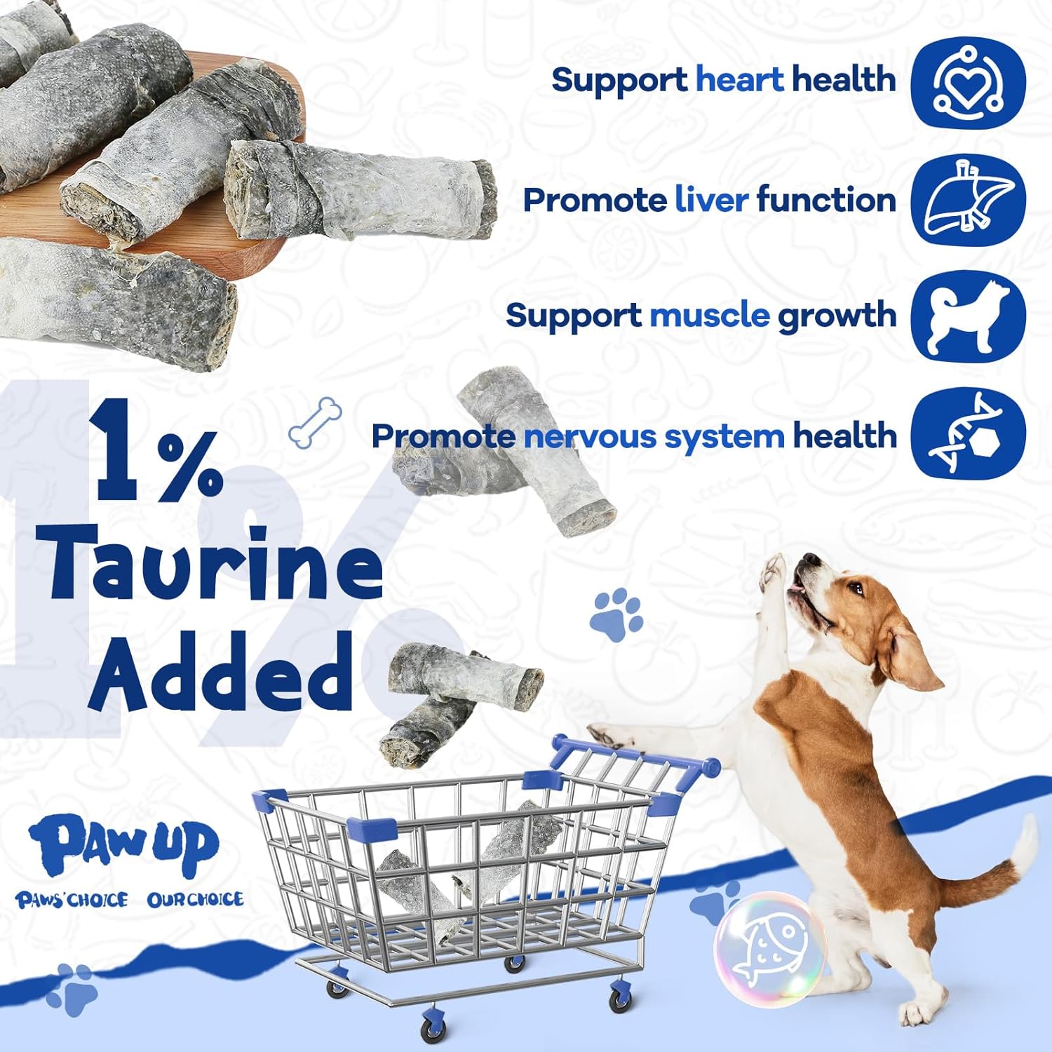 • TAURINE ADDITION: Taurine is an excellent nutrient for any age or breed. It has a very good effect on the heart, cerebrovascular, and retina of dogs. 1% taurine is added to treats, which can be directly supplemented in daily life