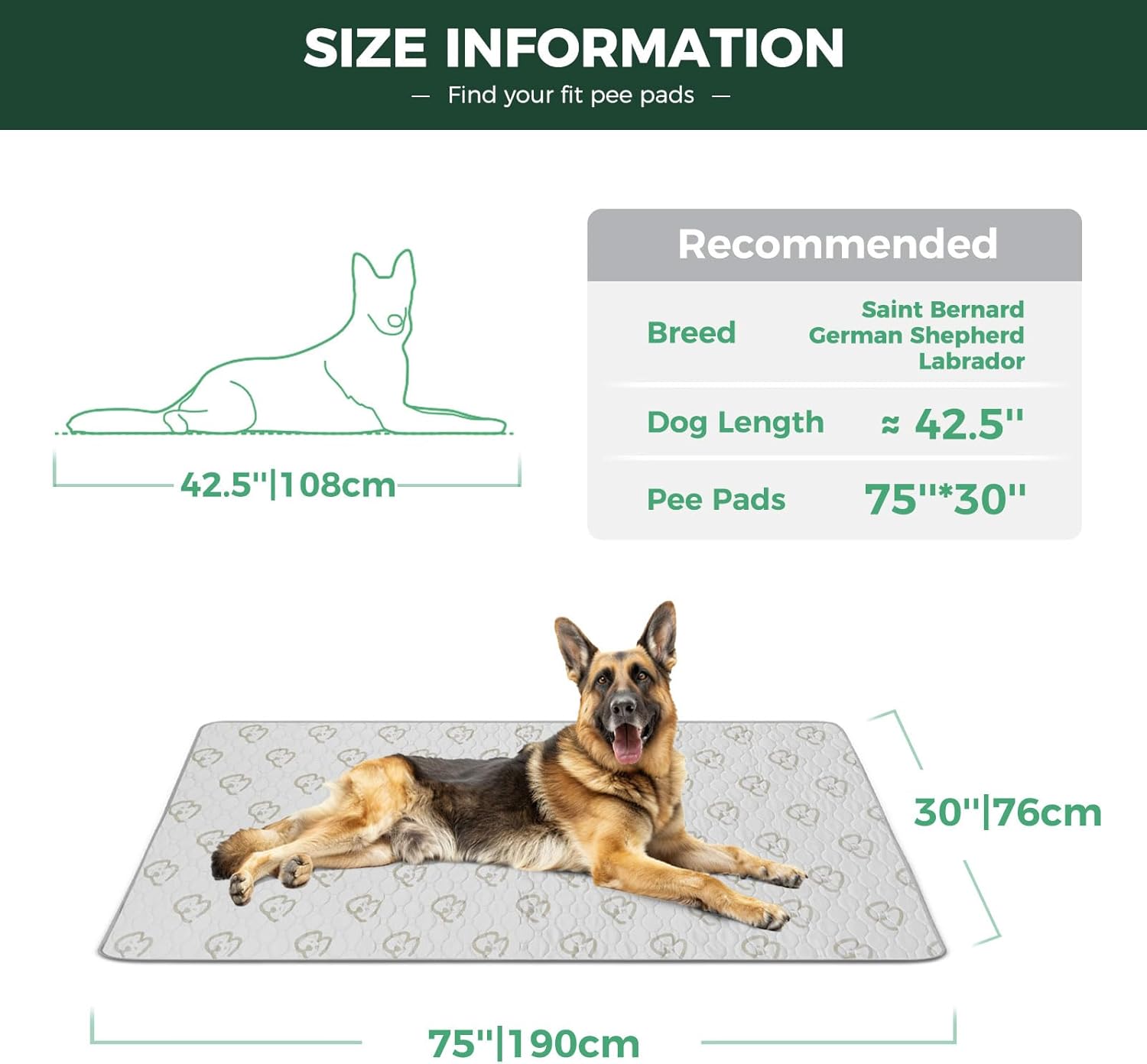 FXW Washable Pee Pads for Dogs, Puppy Pads with Super Absorbent, Specifically Designed for Potty Training, 75" × 30" Rectangle, Khaki, 2 Packs