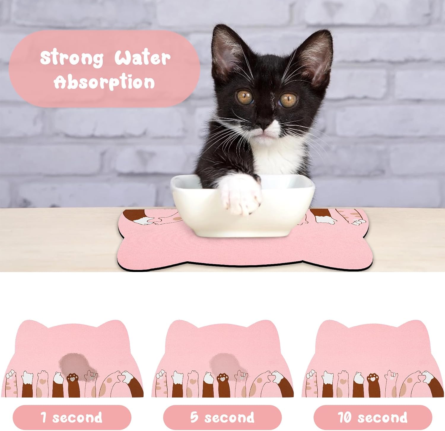 • 【Super Absorbent Pet Placemat】With highly absorbent surface and waterproof backing , this cat bowl mat can quickly absorb liquid and wet food stains to prevent food and water from spilling onto floor