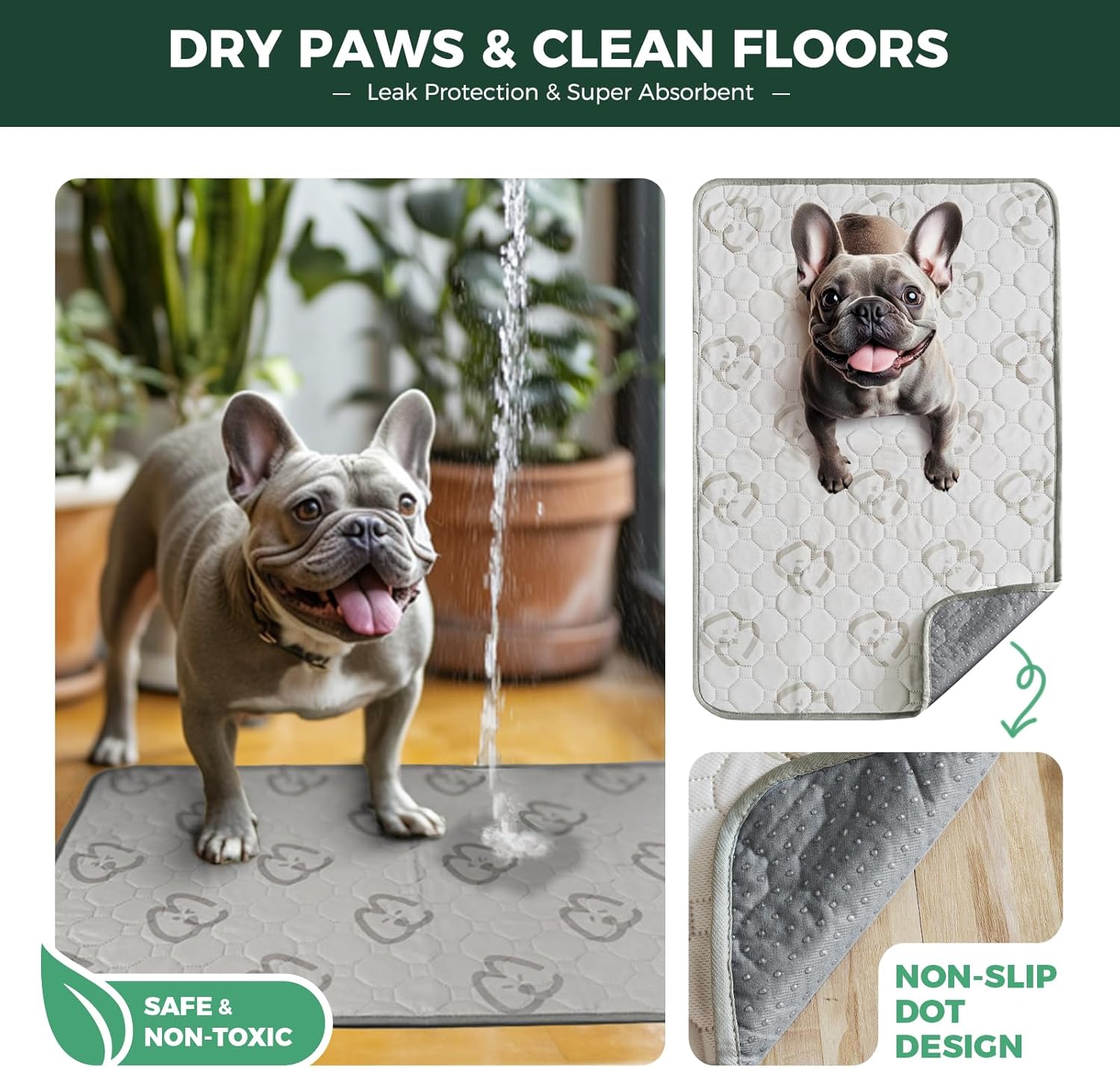 • Over 100x Reusable & Eco-friendly: Our puppy mats are machine washable and built to last over 100 uses. These reusable puppy pads for dogs are an eco-friendly, cost-saving choice — our dog training pad costs 5 times less per use than disposables.