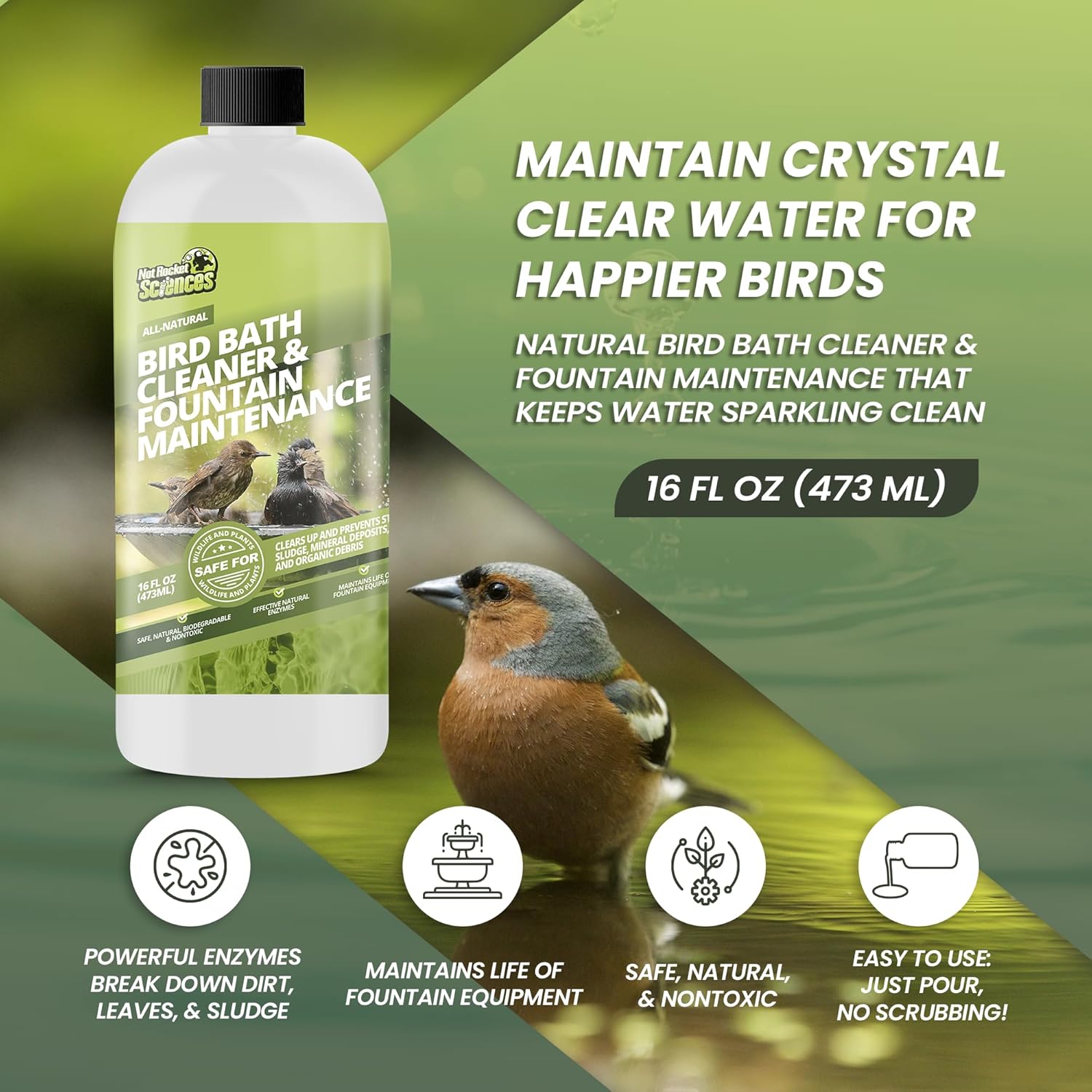• SAFE FOR BIRDS: This bird bath & fountain clarifier is natural, non-toxic & safe for birds and wildlife. Itโ€™s ideal as a birdbath & fountain maintenance cleaner that safely prevents organic build up.