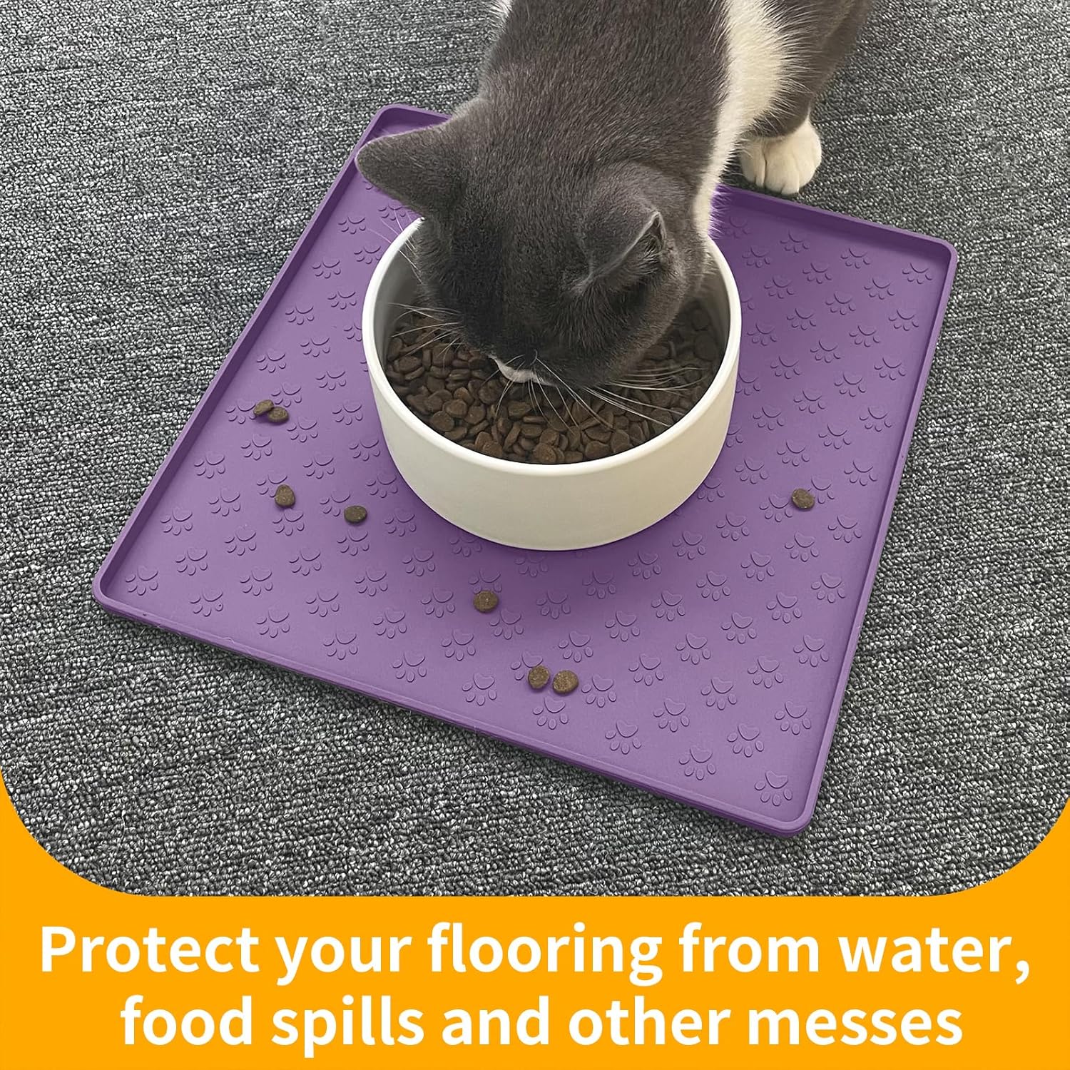 Ptlom Dog Food Mat Anti-Slip Bowl Mats for Food and Water, Waterproof Silicone Pet Placemat with High Raised Edges, Non-Slip Puppy Feeding Tray for Small, Medium Large Cats Dogs, Purple, 11.8"x11.8"