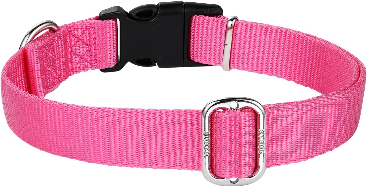 Hyhug Small Dog Collar Quick-Release Pink| Heavy-Duty Nylon Puppy Collar, Adjustable & Durable Pet Supplies for Boy & Girl Dogs (Small, Candy Pink)