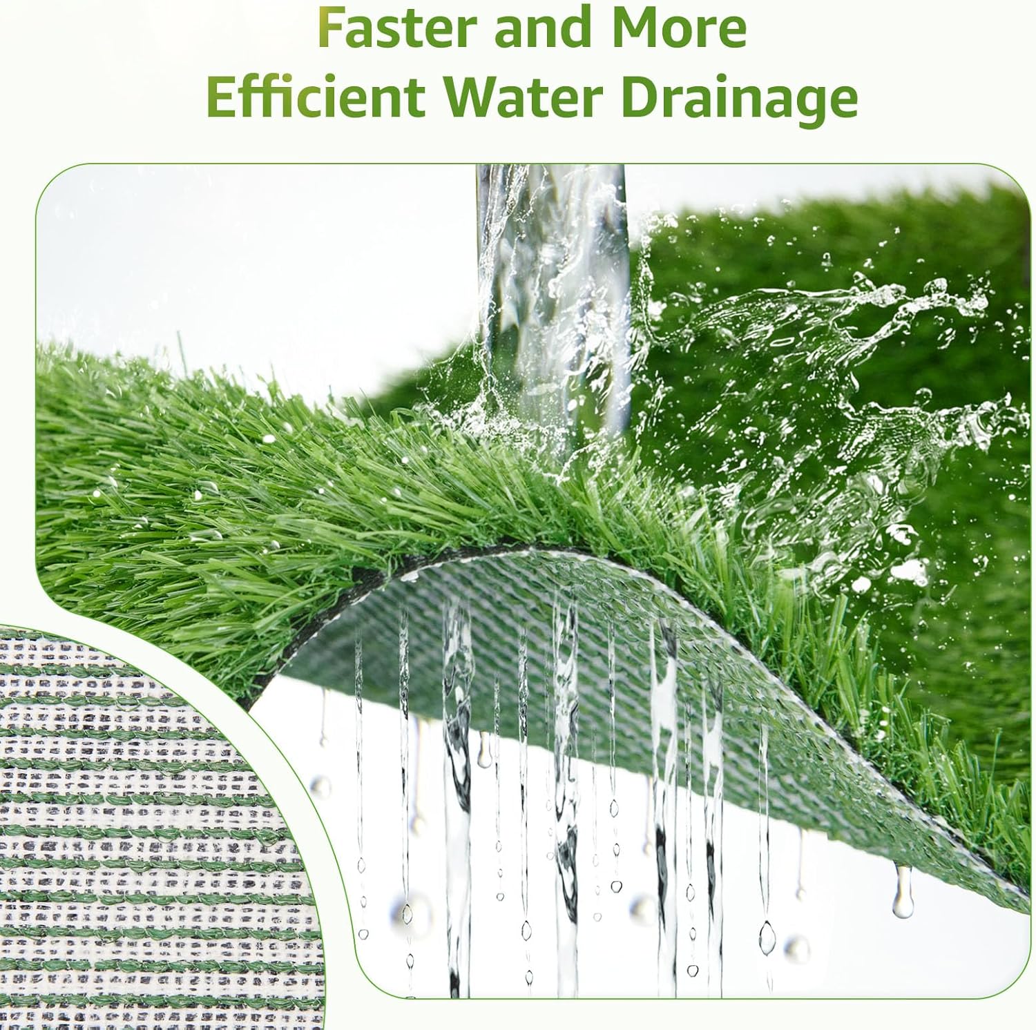 • RAPID FLOW DRAINAGE: Constructed with a highly-drainable backing material to maximize draining capacity, to help urine and clear water wee away quickly, and the porous grass avoids wet paws after dog use- Avoid any mess for potty time.