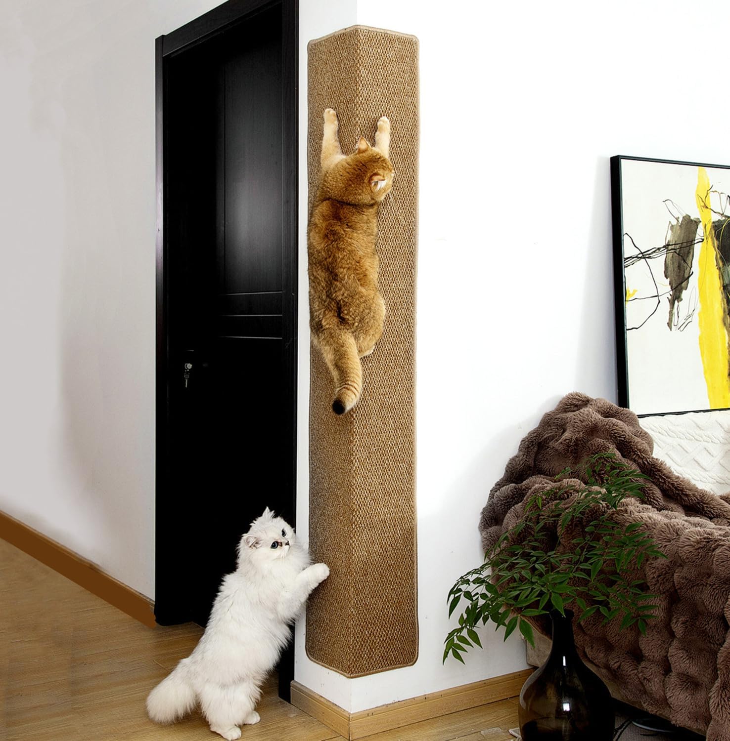 • 【HARDWARE INCLUDED】The carpet can be used as cat wall carpet with 10pcs traceless nails for the concrete or brick wall and 6pcs screws for the dry wall, or as a cat carpet protector to protect your sofa and couch or just a floor rug.