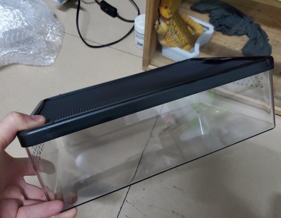 • size --- this reptile breeding box measure about 32x22x10cm(12.6x8.6x3.9inch), Please note that the height of the reptile container is only 10cm/3.9inch, and there are ventilation holes at the top of the box about 0.4 cm, so this reptile box is not suitable for large reptiles and small insects.