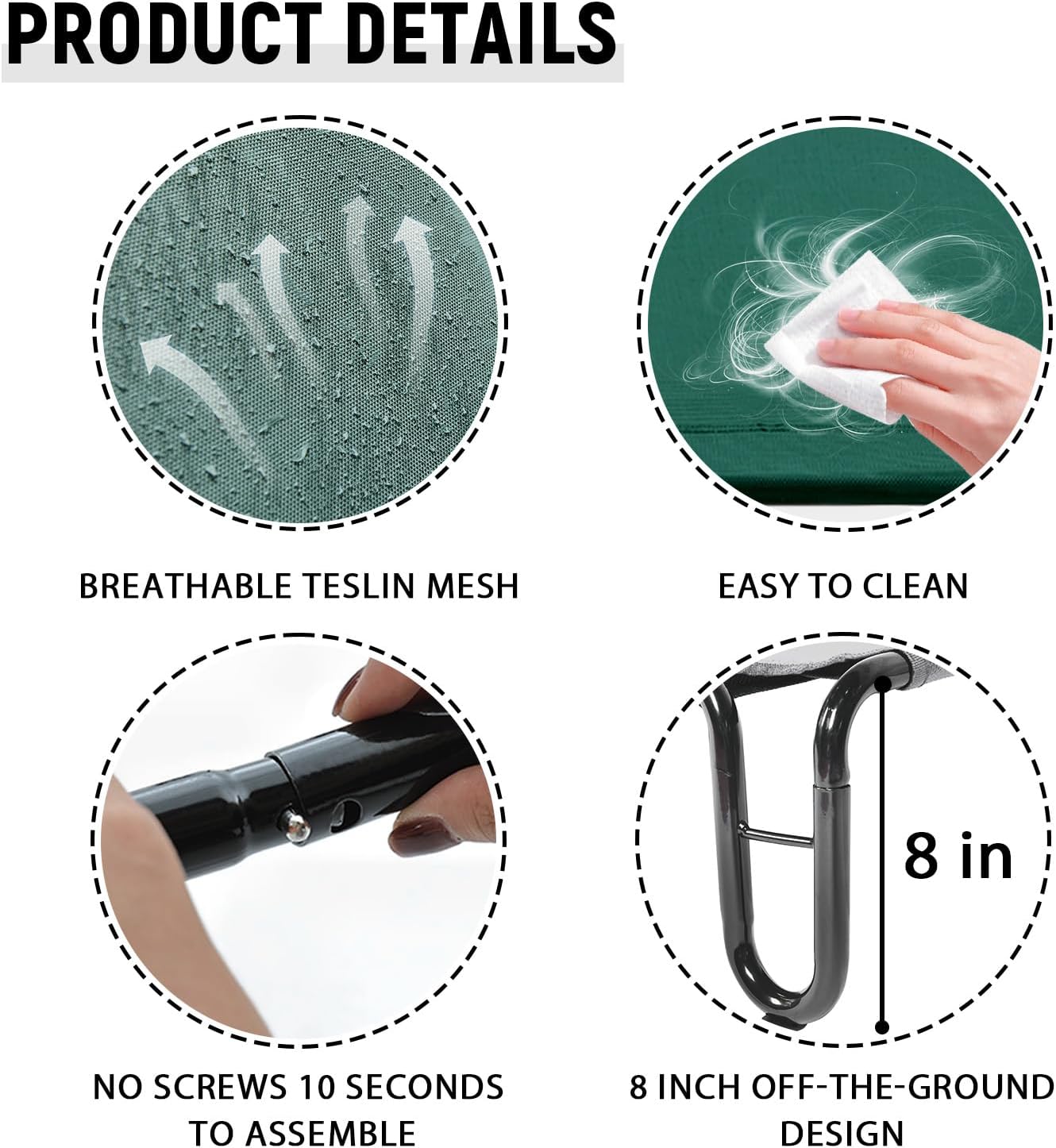 pettycare Elevated Outdoor Dog Bed - Raised Cots Bed for Large Dogs, Waterproof Pet Hammock Easy to Assemble, Cooling Frame Cot with Breathable Teslin Mesh, Durable, Non Slip, Up to 65 lbs,Green