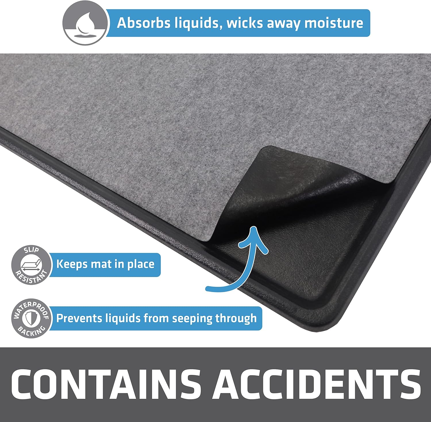 • CONTAINS ACCIDENTS & PROTECTS FLOORS: Drymate Dog Crate Mats are made with a thin yet absorbent material that contains urine inside kennels and provides a sure-footed surface for your pet’s paws (great for travel). Place under the crate to muffle sound and protect floors from scuffs and scratches. MULTI-USE: Can also be used as a reusable potty pad or cat litter mat.