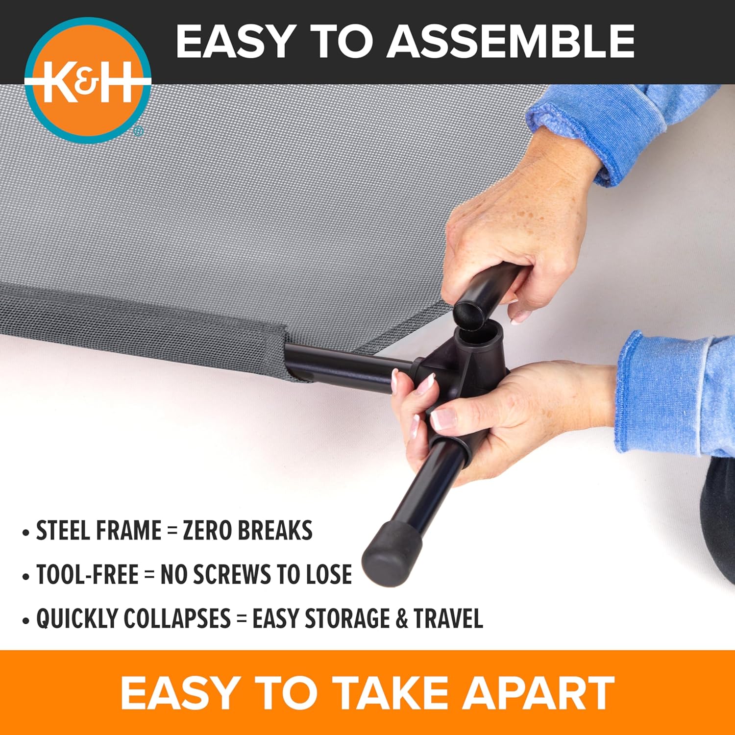 • EASY TOOL-FREE ASSEMBLY: Collapsible outdoor dog cot is easy to assemble and disassemble, no tools necessary making this portable bed great for use at home or during travel, camping, picnicking, place cot for dog training and more