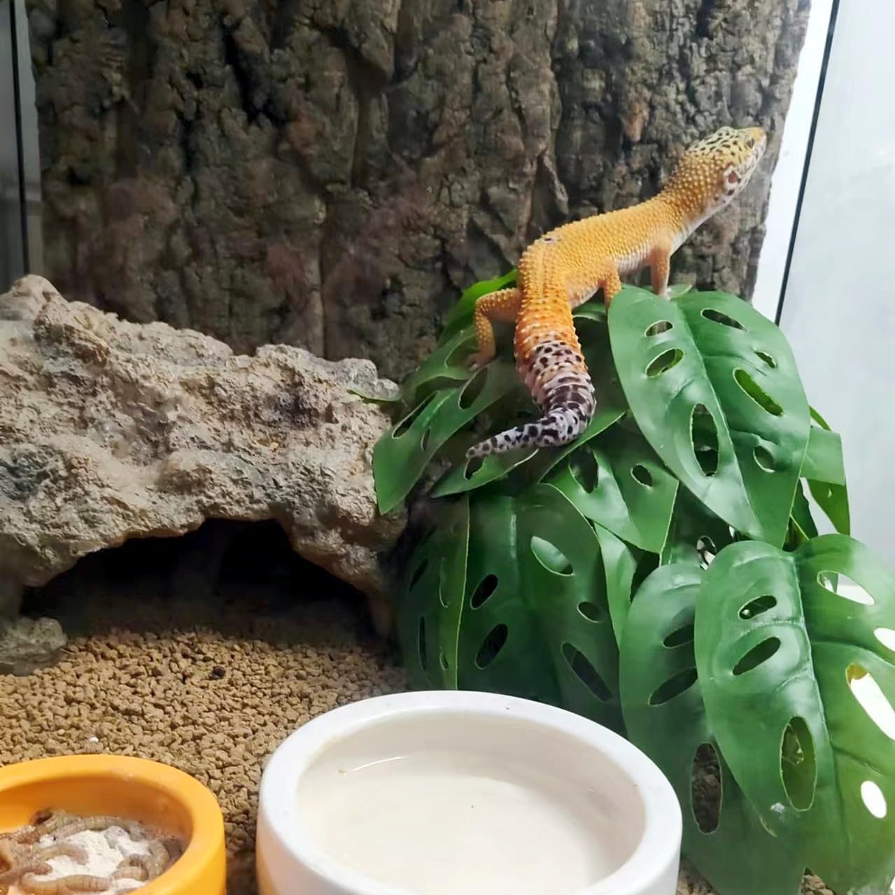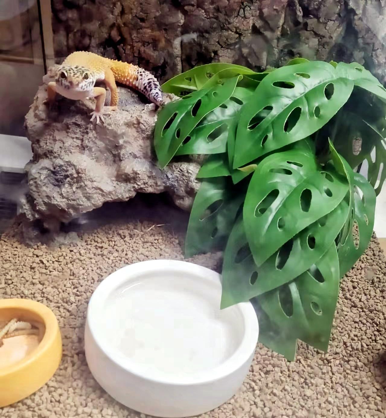 • Natural Habitat Decor: Lots of lifelike plants create a natural habitat for reptiles and amphibians, promoting a safe and relaxed environment while optimizing space utilization. The lush leaves not only serve as decorative landscaping but also provide hiding spots and climbing opportunities.