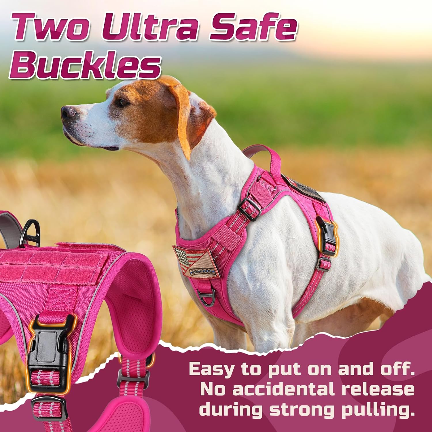 rabbitgoo Tactical Dog Harness for Large Dogs, No Pull Military Service Vest with Handle & Molle, Easy Control for Training Walking, Adjustable Reflective Straps, Rose Red, L