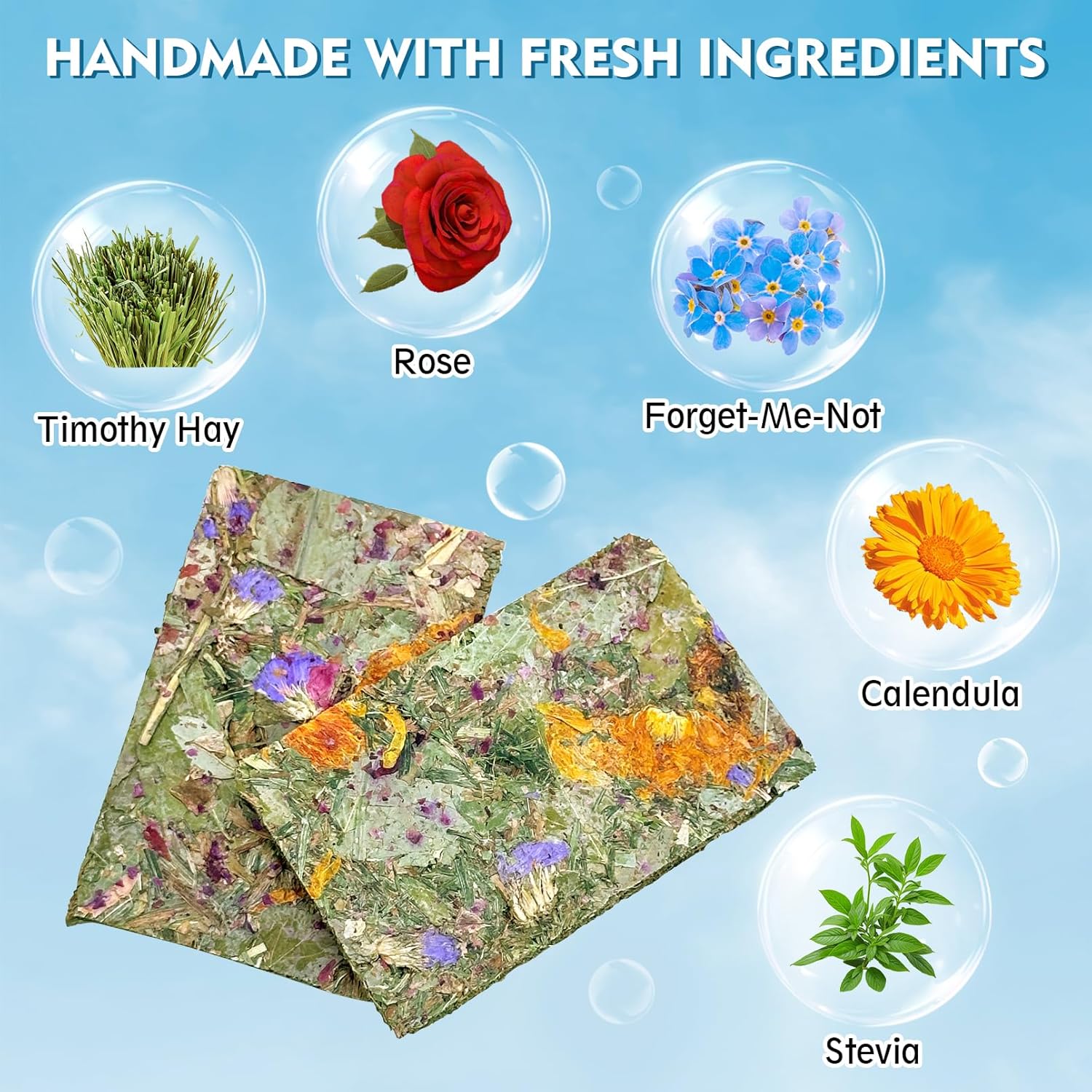 • [Crispy Chew Toys]: Guinea pig chew toys contain a variety of natural ingredients such as timothy hay, forget-me-not, stevia, calendula, rose, providing small animals with multi-faceted nutritional needs. Made by pressing and hot air drying to keep the taste crisp