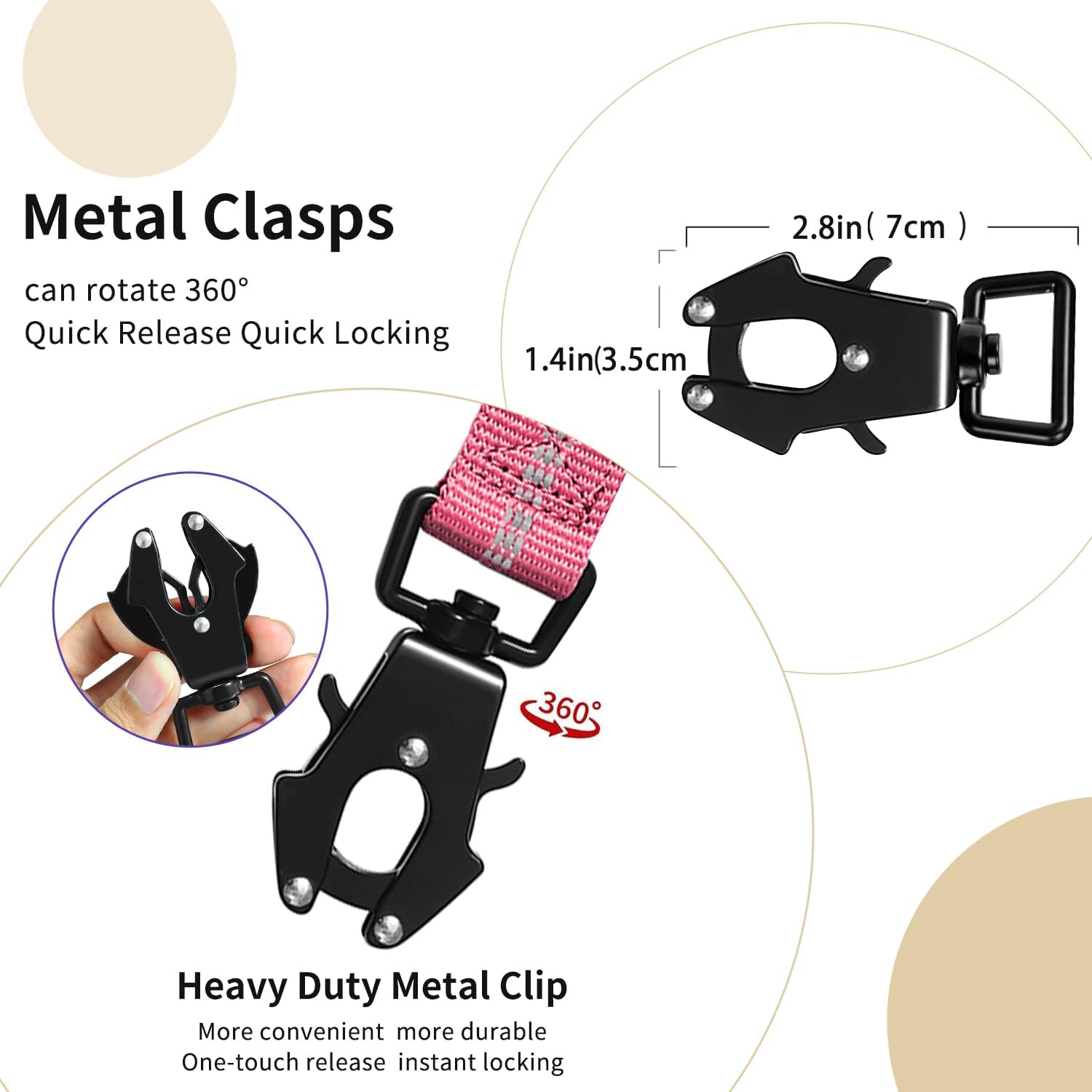 • 【🐕Quick Release Frog Clip 】heavy duty dog leash The 360° Rotating Frog Clip is made of Aviation Aluminum,can hold up to 400 pounds. Quick release and locking dog leash buckle while holding tight under strong pull. 360°rotatable to prevent the dog leash from twisting and knotting.