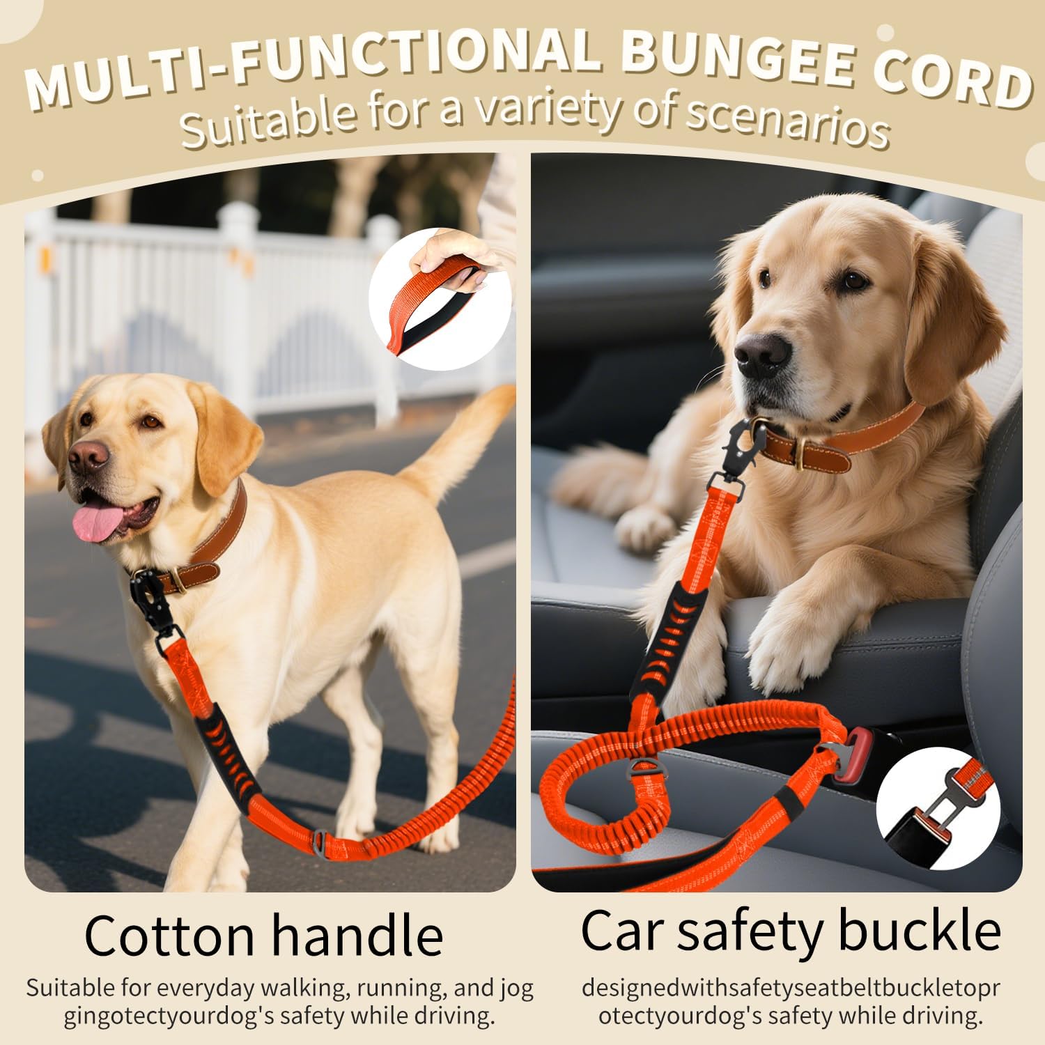 Heavy Duty Tactical Dog Leash, 4-6FT Shock Absorbing Bungee Leash with 2 Padded Handles, Metal Carabiner Clip, Car Seatbelt, Reflective leashes for Large Breed Dogs Medium Dog (Orange)