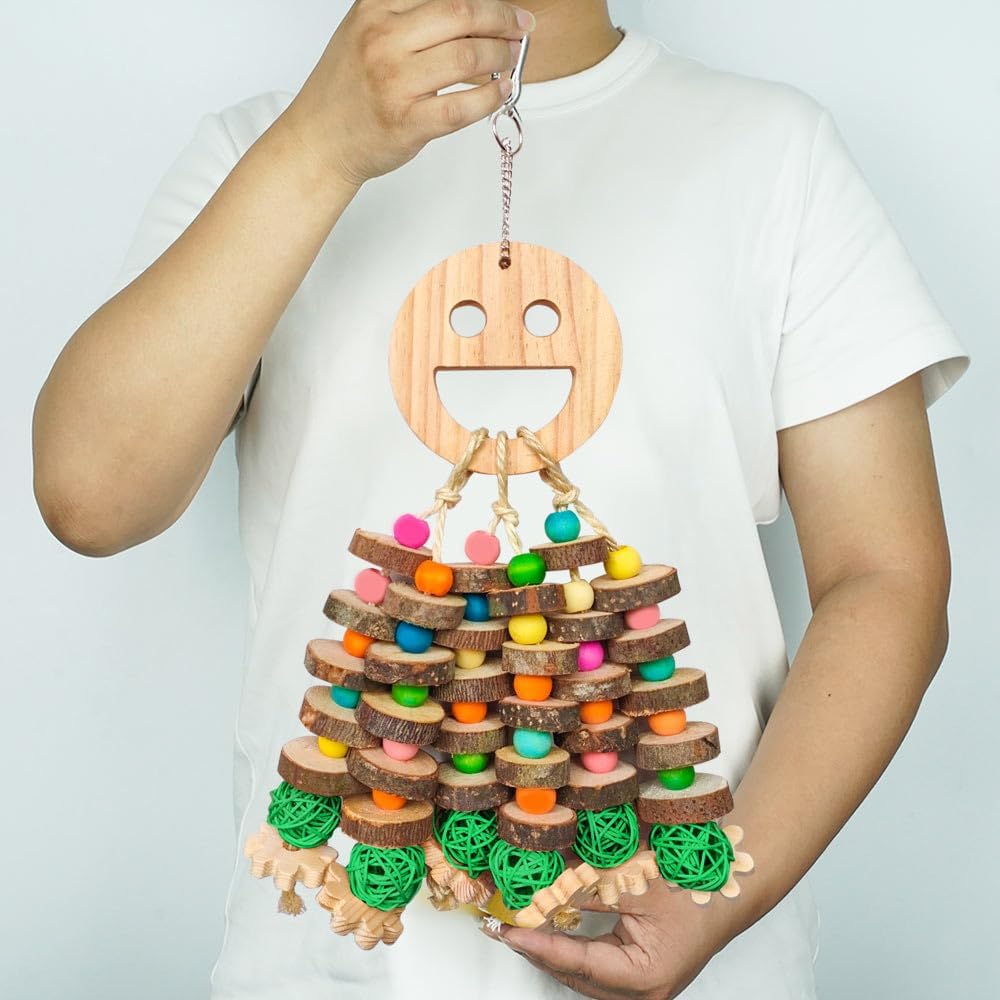 • SAFE & DURABLE MATERIAL: The bird toy for parrots is made of natural wood, hard and durable enough for parrots to sharpen their beaks and gnaw. The surface is dyed with edible coloring, safe and environmentally friendly, without glue or cables, and will not affect the health of the parrot.