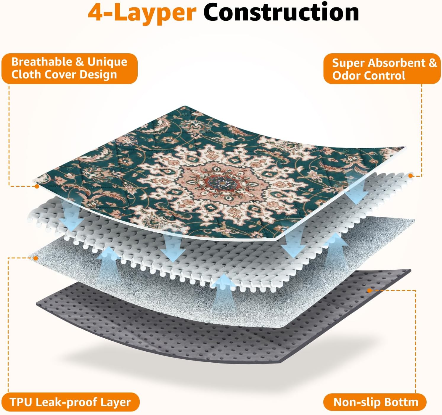 • STYLISH DOG PADS: Our Bohemian style reusable puppy pads not only ensure reliable floor protection, but they also add a touch of style to your home. They seamlessly blend with your interior decor, providing a comfy, safe spot for your furry friend’s activities or relaxation