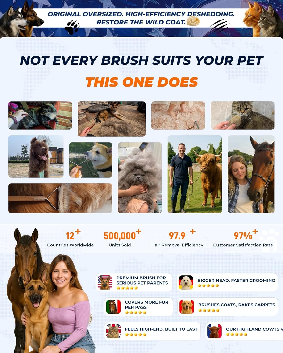• ✂️【Effortless Mat and Tangle Removal】Easily remove stubborn mats and tangles with KIZO ESLO️ professional-grade extra larger dematting comb. Designed for both cats and dogs of medium or long coat length, like German Shepherd, Husky, Bernese Mountain Dog, this professional grooming tool ensures a smooth, pain-free grooming experience, leaving your pet's coat healthy and neat.