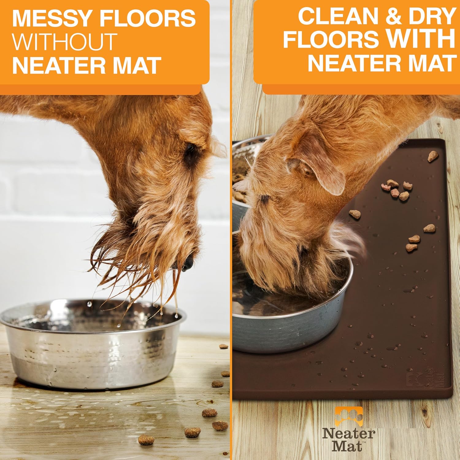 Neater Pet Brands Neater Mat Pet Mats for Food and Water, Cat & Dog Bowl Mat Waterproof Silicone, Feeding Tray, Dog Food Mats for Floors, Placemat w/Raised Edge for Under Bowls, 24" x 16", Brown