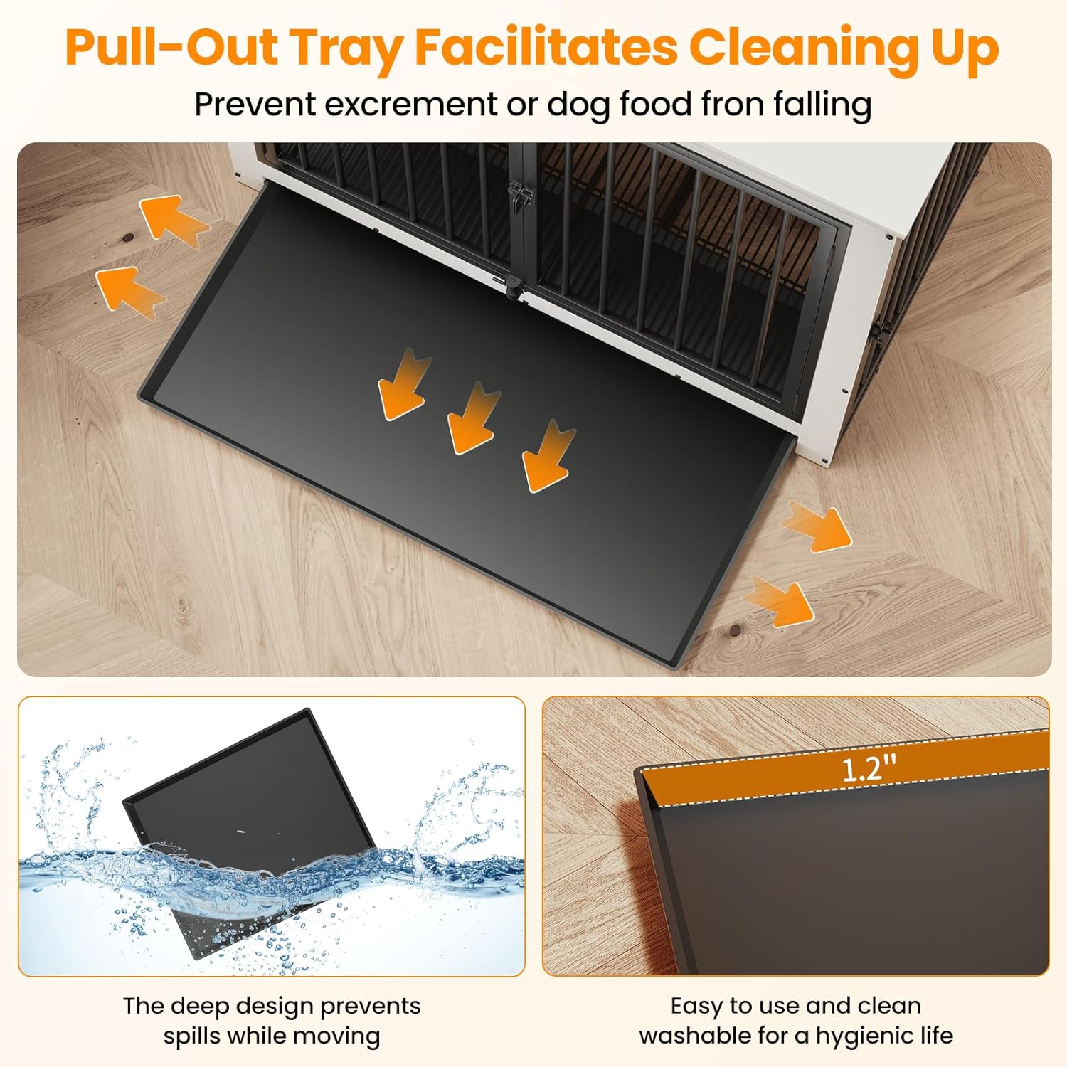 • 【Versatile Tray Usage】Put the tray under the bottom mesh to catch crumbs, fur, and dirt, keeping your dog's place clean without dirtying your floor, maintaining a tidy living space for your pet, or place the tray above the mesh to offer your dog a flat, comfortable surface—it's up to you