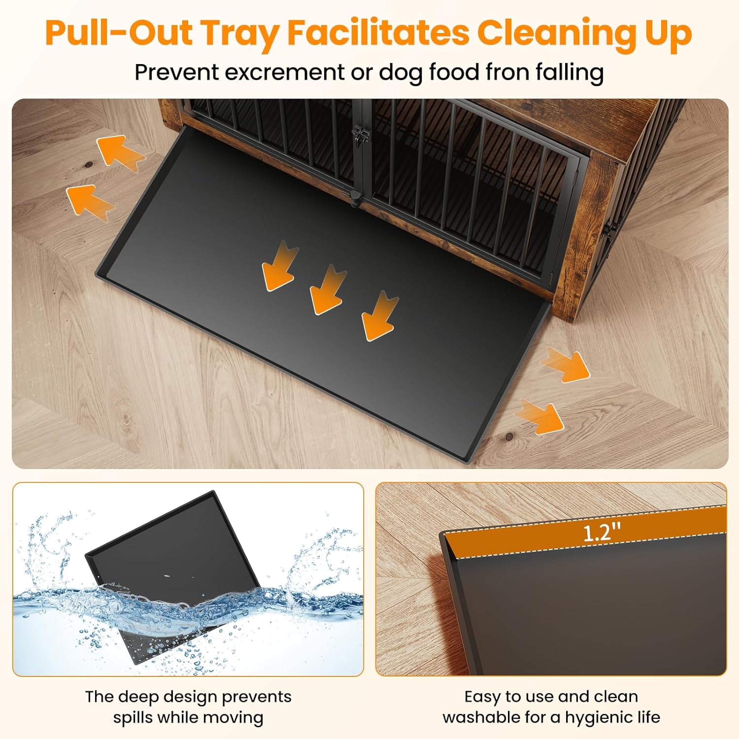 • 【Versatile Tray Usage】Put the tray under the bottom mesh to catch crumbs, fur, and dirt, keeping your dog's place clean without dirtying your floor, maintaining a tidy living space for your pet, or place the tray above the mesh to offer your dog a flat, comfortable surface—it's up to you