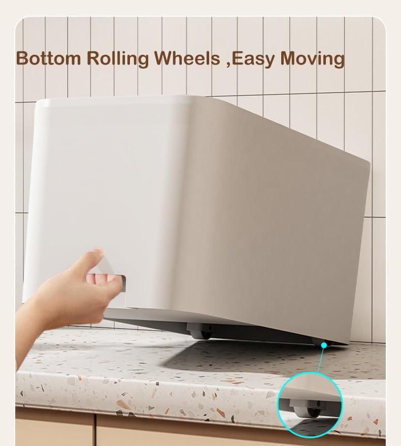 • 【Moveable pet food bin with Wheels】:The 4 detachable rolling wheels make it easier to move around the container even when it's full, and it lifts the dog food bin up to aviod the moisture from floor.