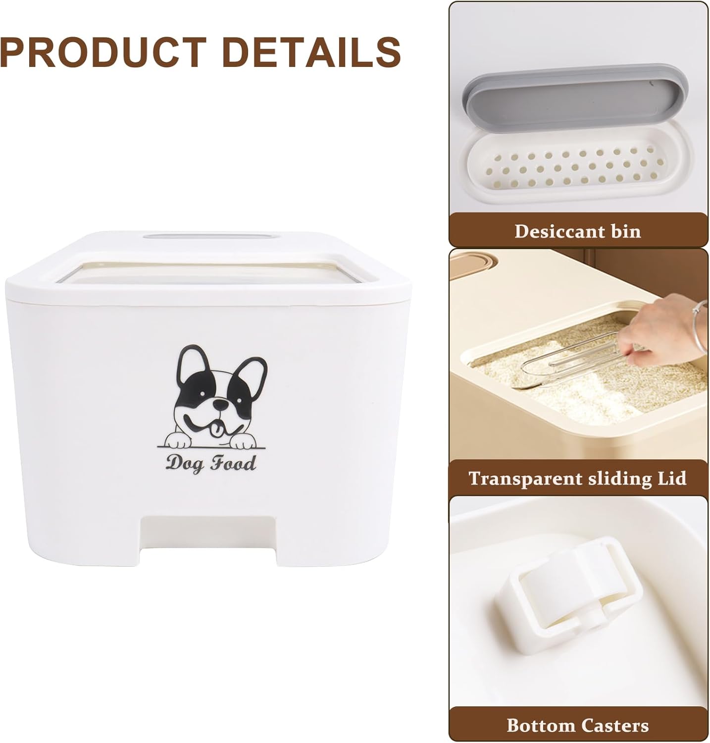 • 【Large Capacity Pet Food container 10lbs】-This airtight dog food bin size is 15''x8.7''x5.9'' in (IN),it can hold up to 12lbs a variety of pet food or treats, your cute family member's dry foods will be kept fresh in our sealable pet food container.