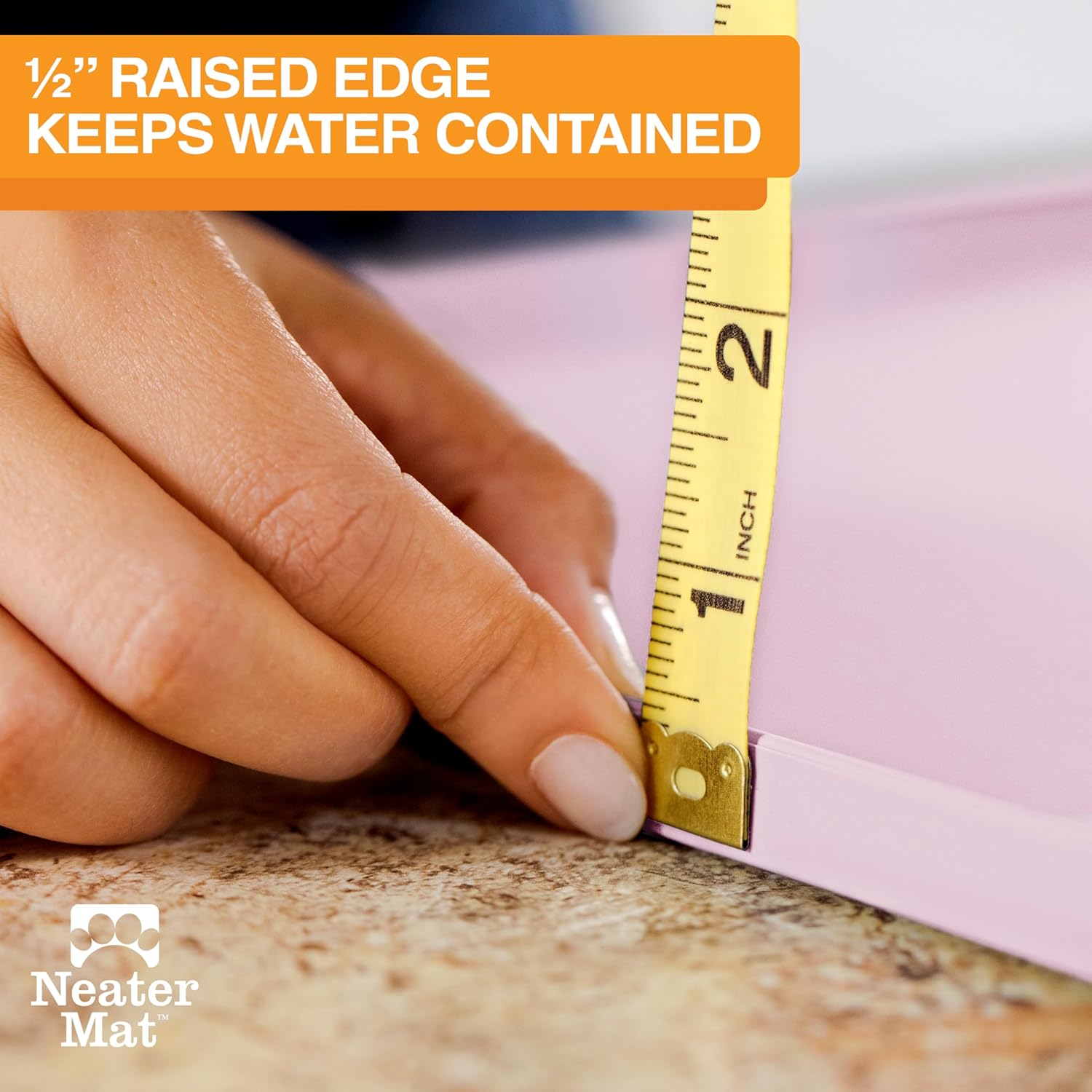 Neater Pet Brands Neater Mat Pet Mats for Food and Water, Cat & Dog Bowl Mat Waterproof Silicone, Feeding Tray, Dog Food Mats for Floors, Placemat w/Raised Edge for Under Bowls, 16” x 10”, Light Pink