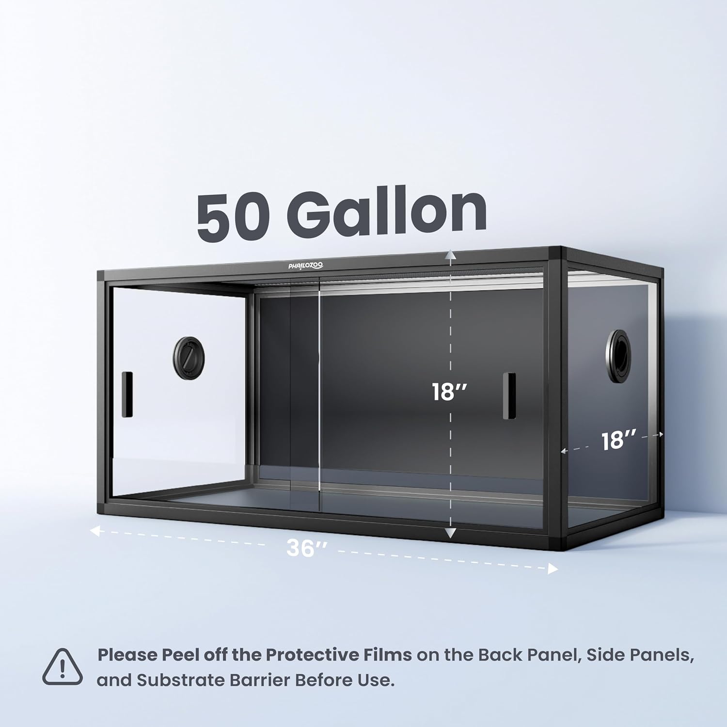 • ใ€Size Mattersใ€‘Our stylish and functional 50 gallon reptile tank measures 36''Lx18''Wx18''H. Perfect for bioactive setups, such as gecko tank, juvenile bearded dragon tank, snake enclosure, lizard tank. Spacious playground for your beloved reptiles to explore and thrive while being safe.