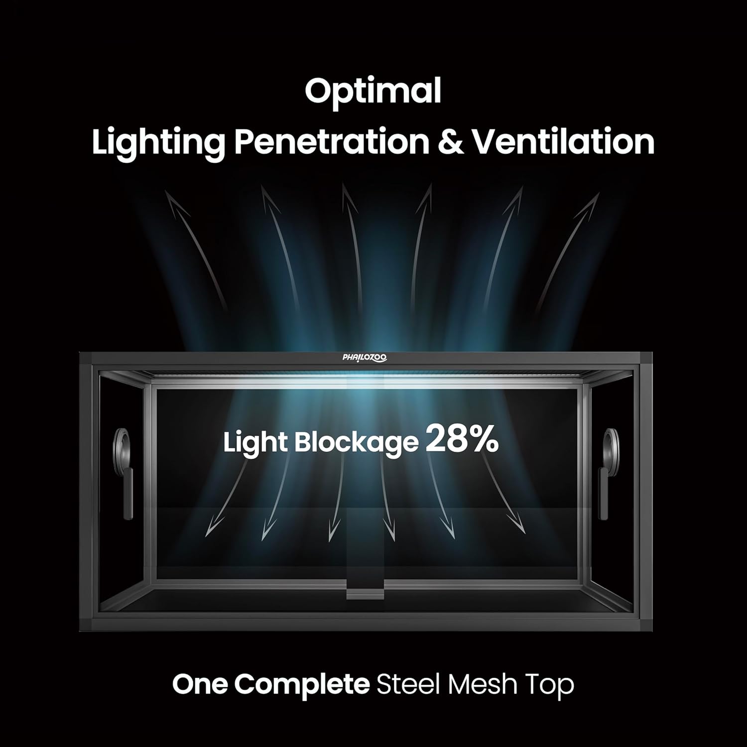• ใ€Highly Adaptiveใ€‘Well-lit screen top with only 28% blockage. Compatible with many reptile accessories and equipment, such as heat lamps for reptiles, reptile humidifiers, reptile misters, reptile foggers, reptile UVA and UVB. Our reptile terrarium is great for holding temps and humidity.