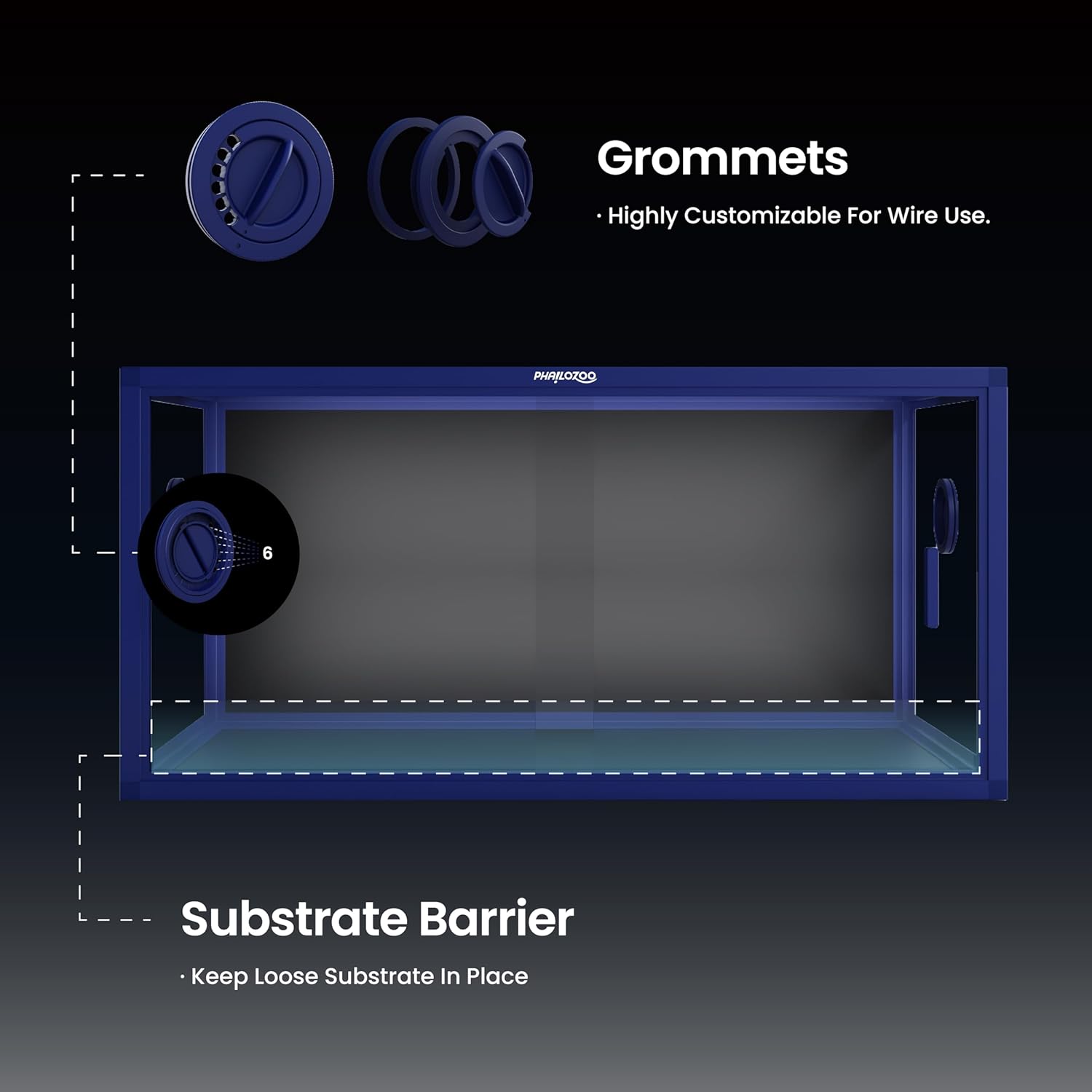 • ใ€Easy Maintenanceใ€‘Front opening reptile terrarium with door handles included for easy cleaning & feeding. No more suction cup problems or unsightly fingerprints all over. The substrate barrier keeps the substrate in place. Our tempered glass doors are durable enough to withstand scratching.