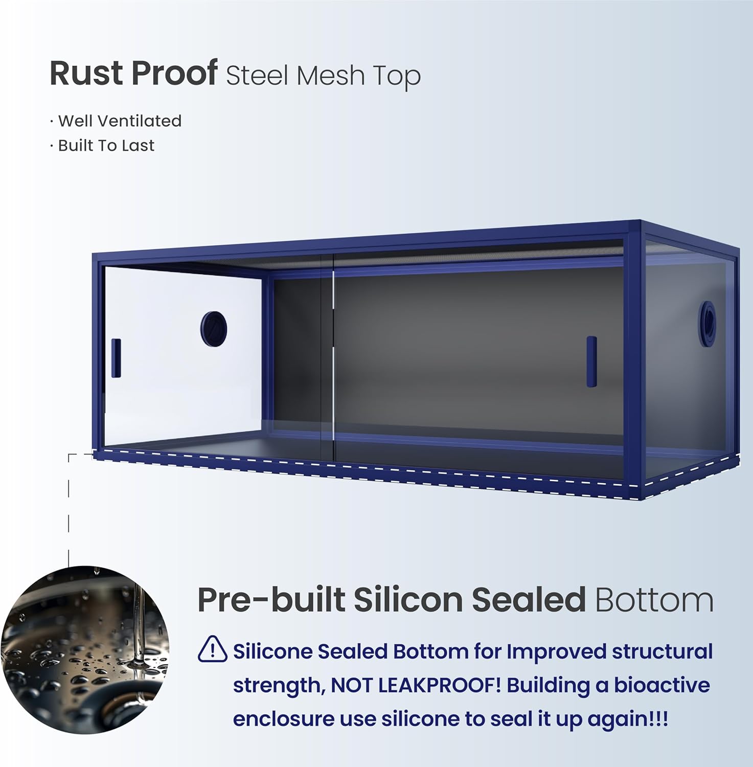 • 【Caution!!!】NOT LEAKPROOF! Silicone-sealed bottom only for improved structural strength. If you’re building a bioactive enclosure, don’t forget to double seal with silicone for a secure and reliable seal!