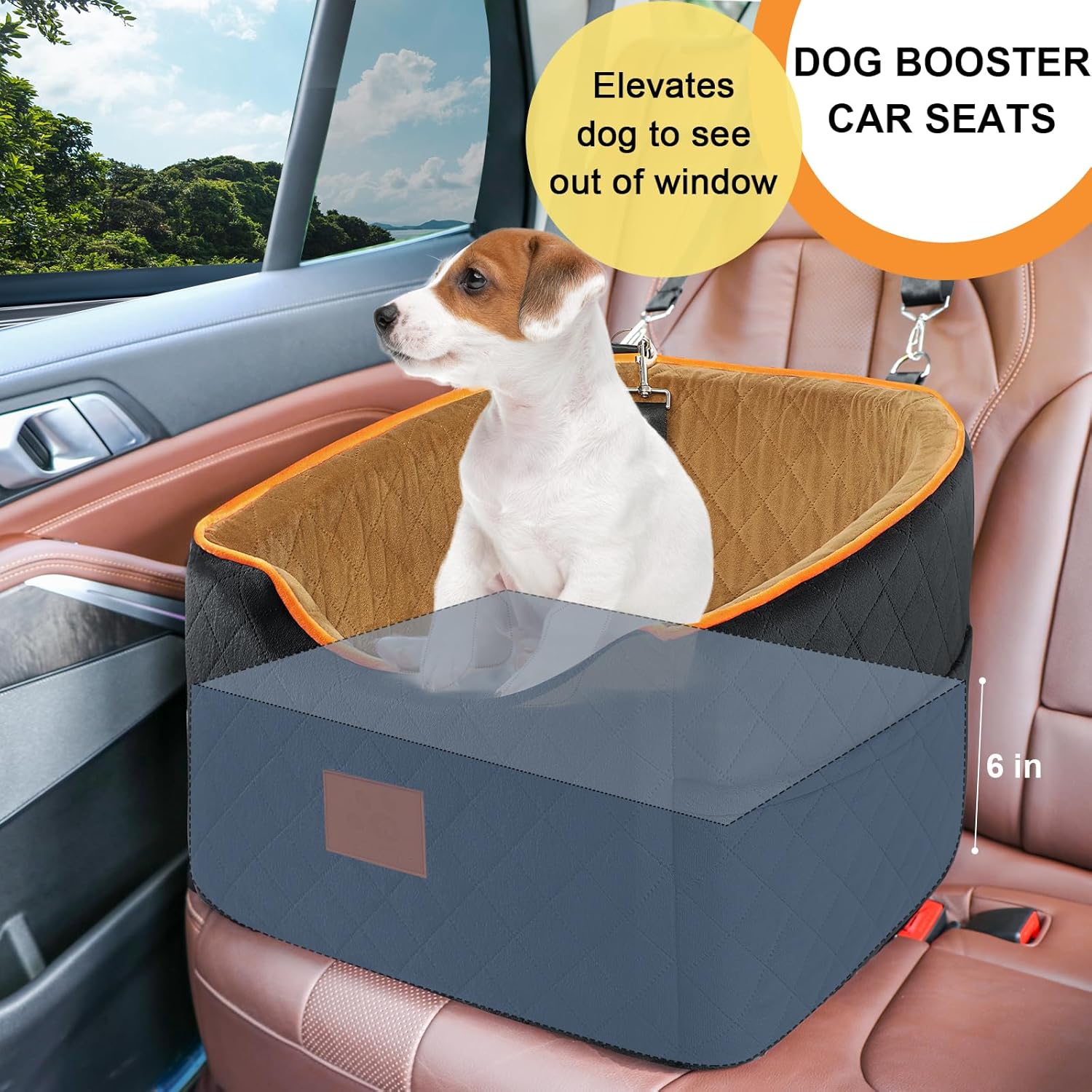 • Perfect for Long Trips: The elevated design of this car seat allows your pet to have a better view out the window, which can help ease their anxiety during car rides. It comes with an adjustable leash that can be attached to your dog's harness to ensure their safety. The interior height of the seat is 6 inches, allowing most dogs to enjoy the scenery outside without obstructing your rearview mirror. This dog booster seat is an ideal accessory for long trips with your furry friend.