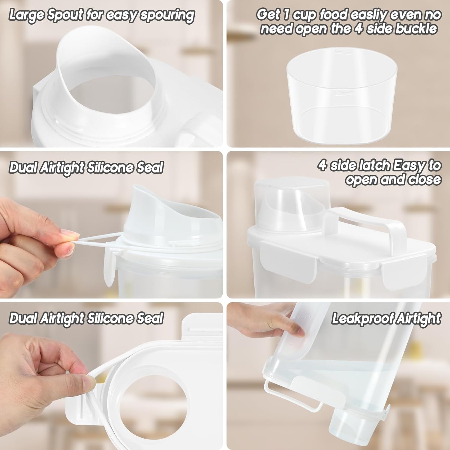 • DURABILITY : Dog food containers are made of PP plastic material、BPA-free、good toughness、reusable、dishwasher safe. Provide a healthy and convenient storage solution for your pet food.