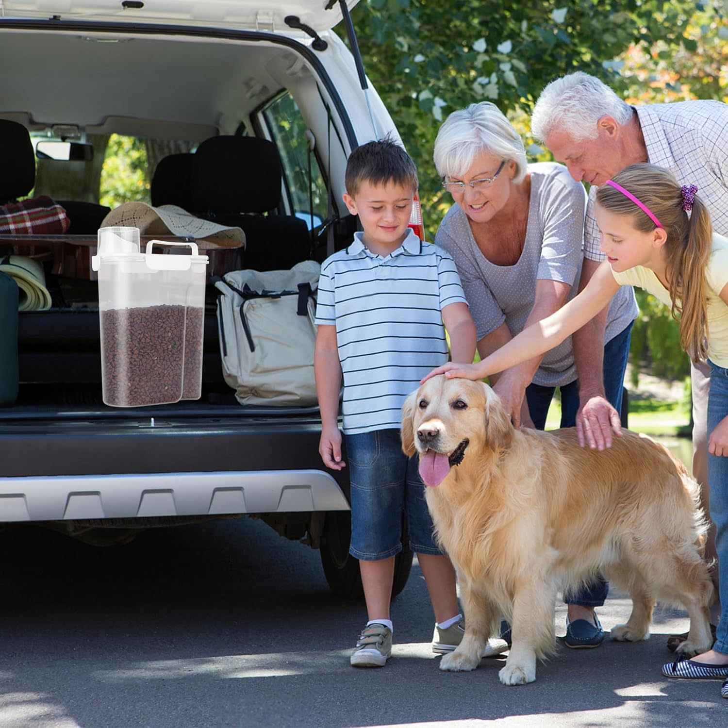 • WHAT YOU GET ? The dog food storage container comes with a 1-pack airtight pet food storage container with a clear measuring cup and an upgraded large spout for easy pouring of pet food at any time. This dog food storage containers can be a gift The perfect gift for any home.