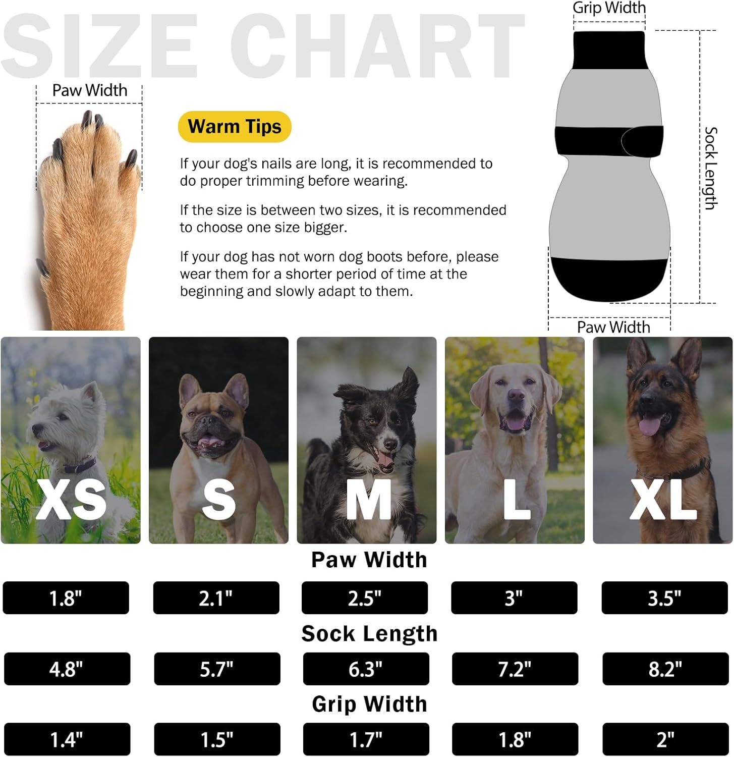 • SIZE GUIDE: S-Paw width 2.1in, sock length 5.7in. If the paw width is between two sizes, please choose the larger size. Includes 6 dog grip socks (two more available for replacement than other sets).